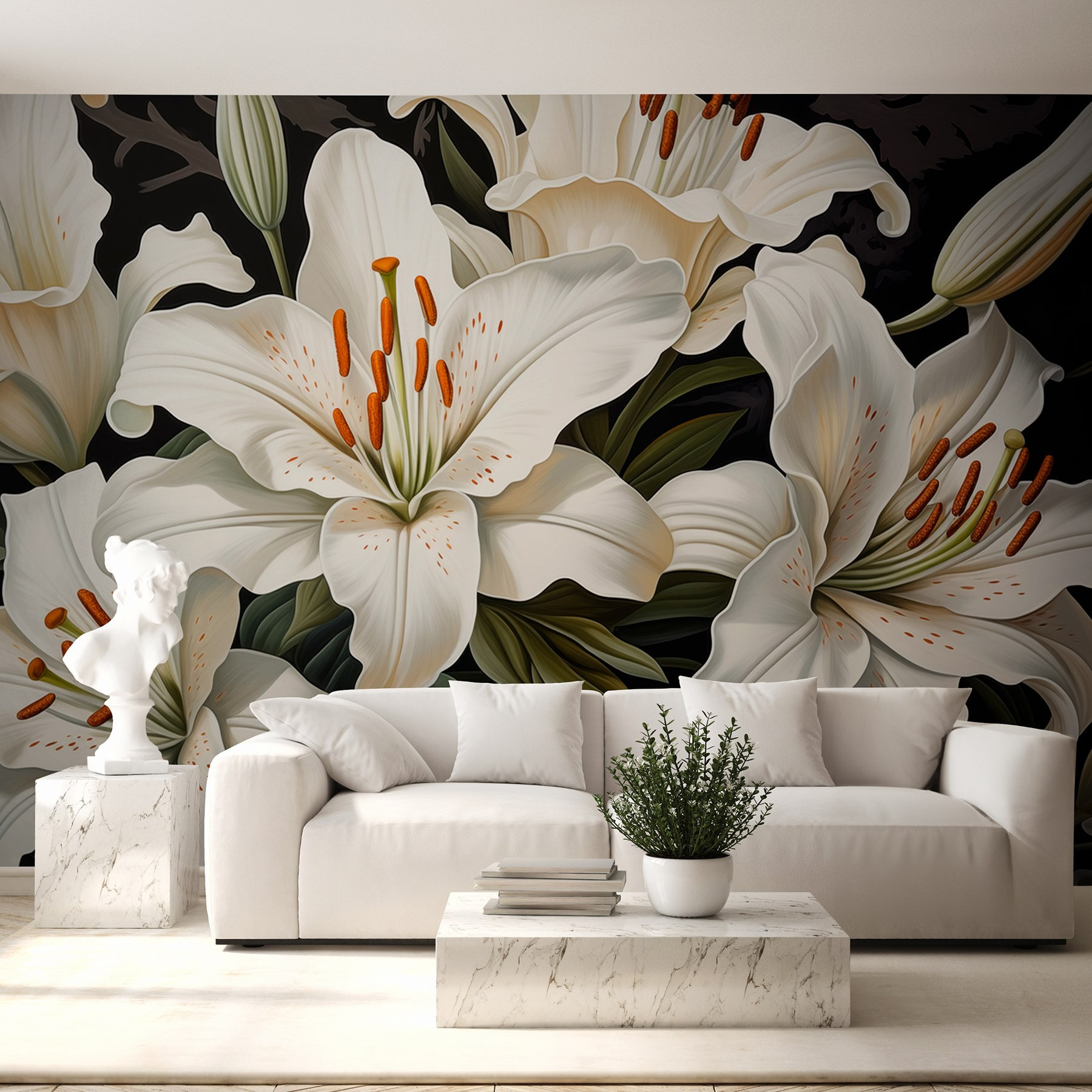 Przekształć dowolną przestrzeń w spokojną oazę dzięki tej oszałamiającej fototapecie przedstawiającej piękne białe lilie w pełnym rozkwicie. Wyobraź sobie, że wchodzisz do pokoju i od razu czujesz się lżej, jakby do środka wpadła świeża, ogrodowa bryza. Delikatne płatki i żywe detale tworzą poczucie spokoju, idealne do przytulnego kącika do czytania lub nawet ściany, która po prostu potrzebuje trochę miłości. To jak przeniesienie natury do domu bez konieczności podlewania! Poza tym, kto nie uśmiechałby się na powitanie tak eleganckich kwiatów każdego dnia? Daj tym gołym ścianom kwiatowy uścisk!