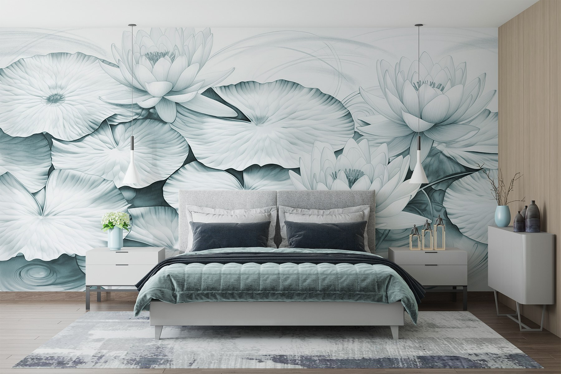 Odmień swoją przestrzeń dzięki spokojnemu pięknu tej fototapety ściennej z uroczą grupą lilii i delikatnymi liśćmi. To jak przeniesienie spokojnego stawu bezpośrednio do pokoju – idealne do marzeń na jawie lub po prostu cieszenia się spokojną chwilą. Wyobraź sobie, że zapadasz się w swoim ulubionym fotelu, z ciepłą filiżanką herbaty w dłoni, podczas gdy delikatne zielenie i biele owijają się wokół ciebie jak delikatny uścisk. Ta fototapeta jest świetna do wywoływania rozmów, czy to o naturze, czy o najnowszej obsesji na punkcie książek. Jest swobodna, ale urzekająca – zupełnie jak leniwe popołudnie nad brzegiem wody.
