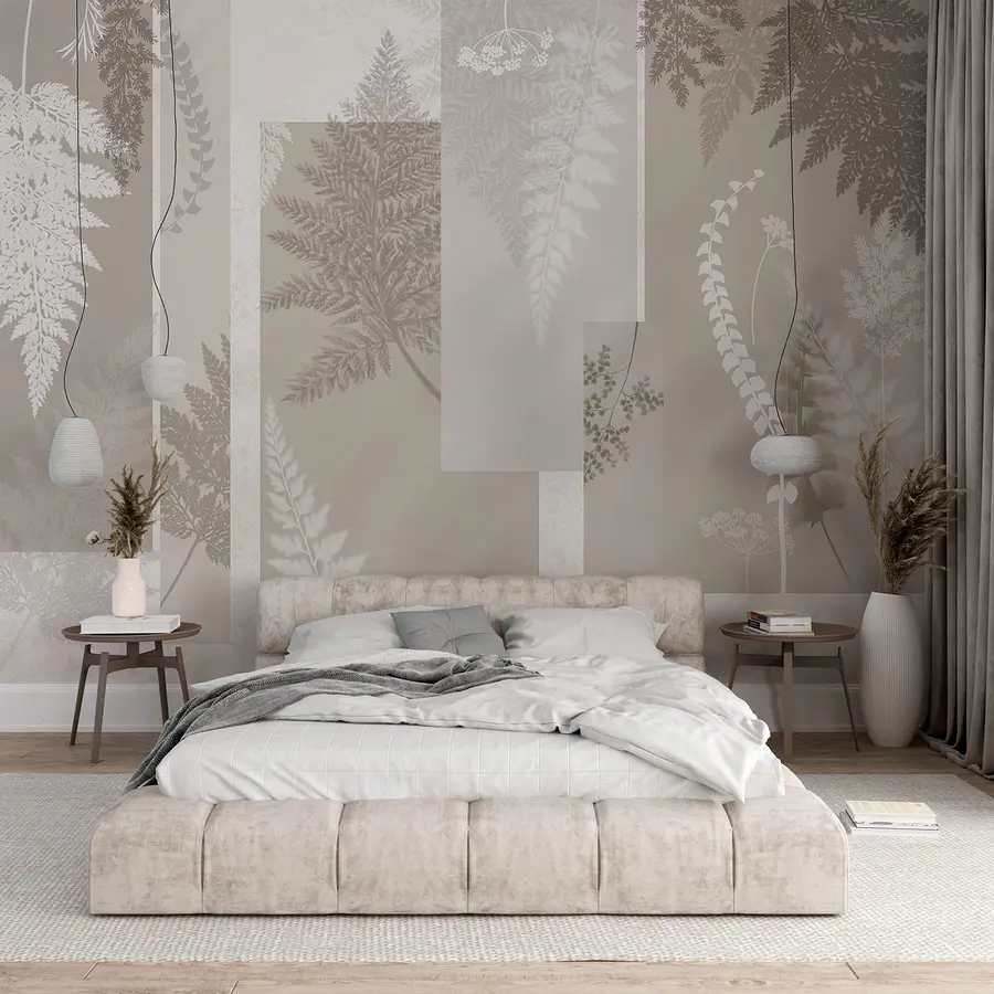 Wnieś odrobinę świeżego powietrza do wnętrza dzięki tej pięknej szaro-białej fototapecie w kwiaty. To jak posiadanie spokojnego ogrodu bezpośrednio na ścianie – wyobraź sobie popijanie kawy w otoczeniu delikatnych liści i kwiatów, które wydają się tańczyć w świetle. Ta fototapeta przekształci każde pomieszczenie w przytulny azyl. Idealna do salonu, a nawet marzycielskiej sypialni, dodaje uspokajającej atmosfery, a jednocześnie jest stylowa. Jest coś odświeżająco nowoczesnego w jej prostocie. Kto nie chciałby codziennie budzić się z odrobiną botanicznej magii?