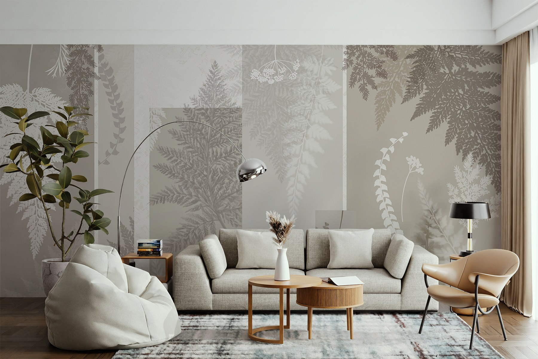 Wnieś odrobinę świeżego powietrza do wnętrza dzięki tej pięknej szaro-białej fototapecie w kwiaty. To jak posiadanie spokojnego ogrodu bezpośrednio na ścianie – wyobraź sobie popijanie kawy w otoczeniu delikatnych liści i kwiatów, które wydają się tańczyć w świetle. Ta fototapeta przekształci każde pomieszczenie w przytulny azyl. Idealna do salonu, a nawet marzycielskiej sypialni, dodaje uspokajającej atmosfery, a jednocześnie jest stylowa. Jest coś odświeżająco nowoczesnego w jej prostocie. Kto nie chciałby codziennie budzić się z odrobiną botanicznej magii?