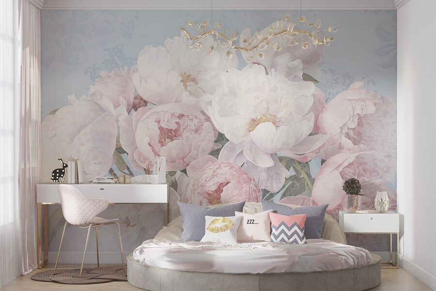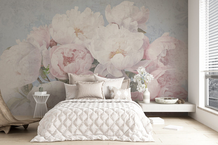 Przekształć dowolną przestrzeń w kwiatową przystań dzięki fototapecie ściennej Bukiet różowych i białych kwiatów. Ta fototapeta przedstawia marzycielską aranżację piwonii, która szepcze elegancję i urok. Wyobraź to sobie: spokojne tło, które zachęca do kojącej atmosfery, dzięki czemu idealnie nadaje się do przytulnego kącika do czytania lub wesołej jadalni. Delikatne kolory tańczą na ścianie, rozjaśniając pomieszczenie, ale nie są zbyt krzykliwe. Wyobraź sobie, że popijasz herbatę, wpatrując się w te piękności i czujesz, jak ogarnia Cię spokój. To jak powiew świeżego powietrza w pomieszczeniu – kto by tego nie chciał?