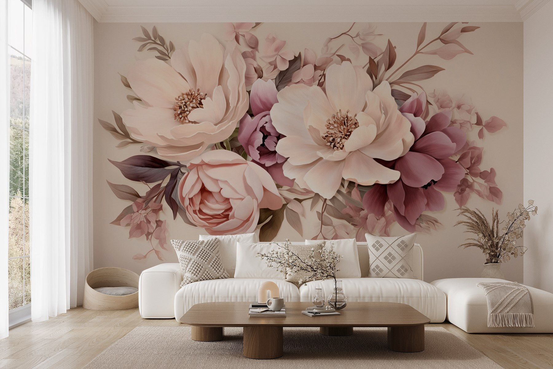 Odmień każdą przestrzeń dzięki tej wspaniałej fototapecie ściennej przedstawiającej zachwycającą grupę kwiatów na delikatnym białym tle. Wyobraź sobie, że wchodzisz do pokoju i od razu czujesz ciepło tych pięknych piwonii i kwiatów, zapraszających do poczucia spokoju i radości. To jak posiadanie ogrodu bezpośrednio na ścianie – nie wymaga podlewania! Idealna do przytulnego salonu, rozjaśnienia korytarza, a nawet dodania uroku pokojowi dziecięcemu, ta fototapeta bez wysiłku poprawi każdą atmosferę. Dodatkowo, może ona wywołać kilka rozmów o tematyce kwiatowej. Jak często możesz powiedzieć, że twoja ściana ma talent do mody kwiatowej? Świeży dotyk, który jest jak delikatny uścisk każdego dnia!