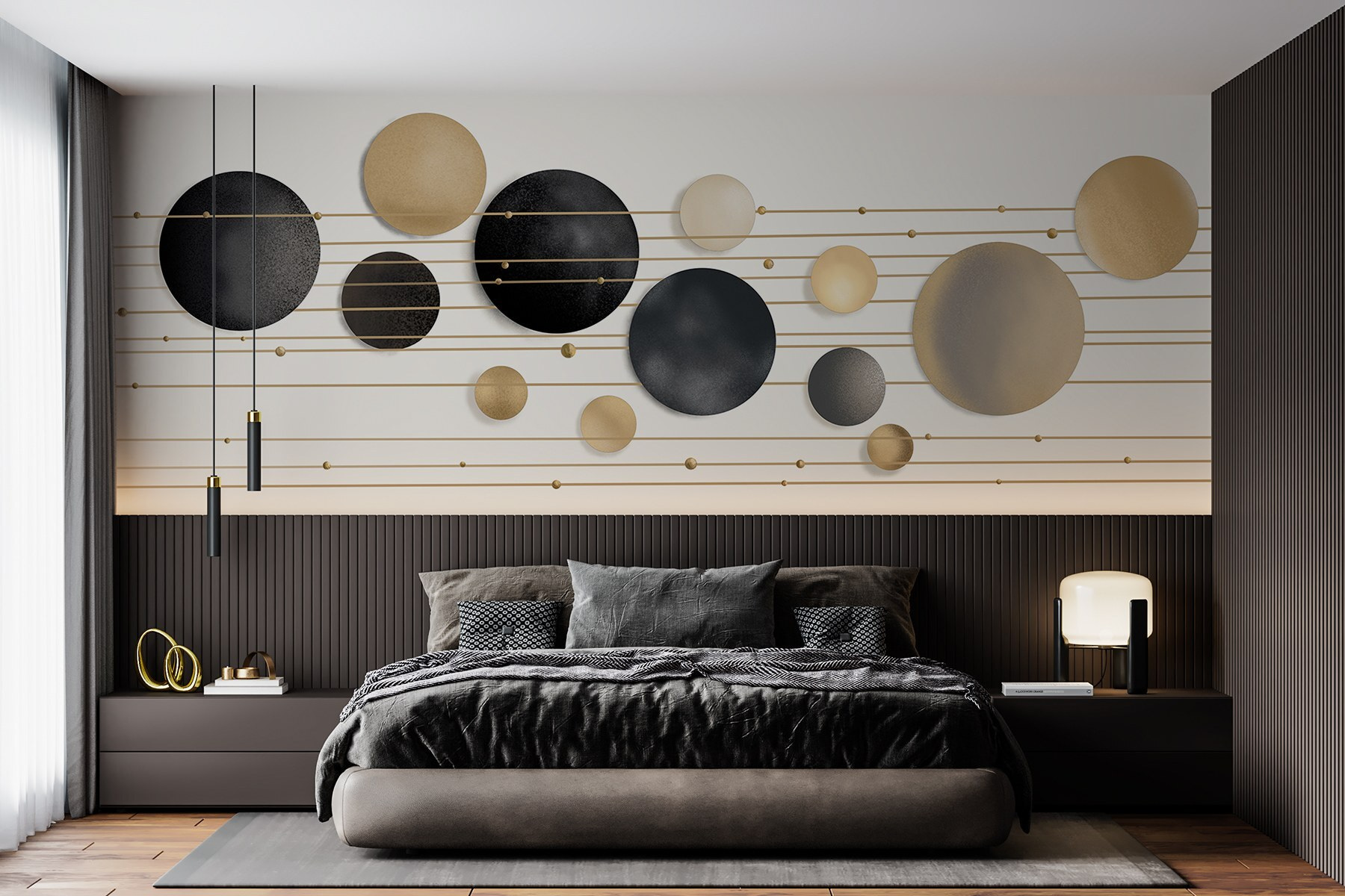 Przekształć swoją przestrzeń w sposób, który wywołuje radość! Ta fototapeta, zawierająca zabawną mieszankę kół i linii, dodaje artystycznego charakteru, który sprawi, że każdy zrobi podwójne spojrzenie. To jak posiadanie dzieła sztuki nowoczesnej bezpośrednio na ścianie – idealne do przytulnych salonów lub eleganckich biur, które potrzebują odrobiny osobowości. Wyobraź sobie gości, którzy wchodzą do domu, rzucają okiem na fototapetę i mówią: “Wow, to przyciąga wzrok!”. Mieszanka kształtów tworzy rytm, który może niemal sprawić, że poczujesz się jak w tańcu. Jest subtelny, a jednocześnie uderzający – wizualna uczta, która przynosi ciepło, ale nie jest zbyt widoczna. Idealny dla każdego, kto lubi odrobinę kaprysu!
