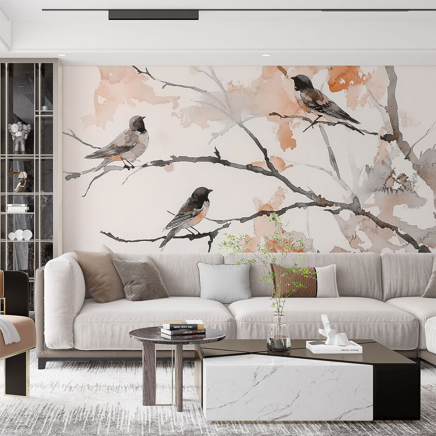 Przekształć każdą ścianę w spokojną ucieczkę dzięki tej urzekającej fototapecie przedstawiającej grupę ptaków siedzących na delikatnych gałęziach. Miękkie akwarelowe pociągnięcia wnoszą delikatny urok, zapraszając odrobinę natury do twojej przestrzeni. Wyobraź sobie, że wchodzisz do przytulnego zakątka wypełnionego spokojem, gdzie ci mali ptasi towarzysze zdają się śpiewać cały dzień. Ta fototapeta nie tylko wisi; ona oddycha życiem, zachęcając do zatrzymania się, refleksji i może wypicia filiżanki herbaty podczas podziwiania widoku. To tak, jakby mieć kawałek świeżego powietrza we wnętrzu, idealny do stworzenia zachwycającego akcentu w każdym pomieszczeniu.