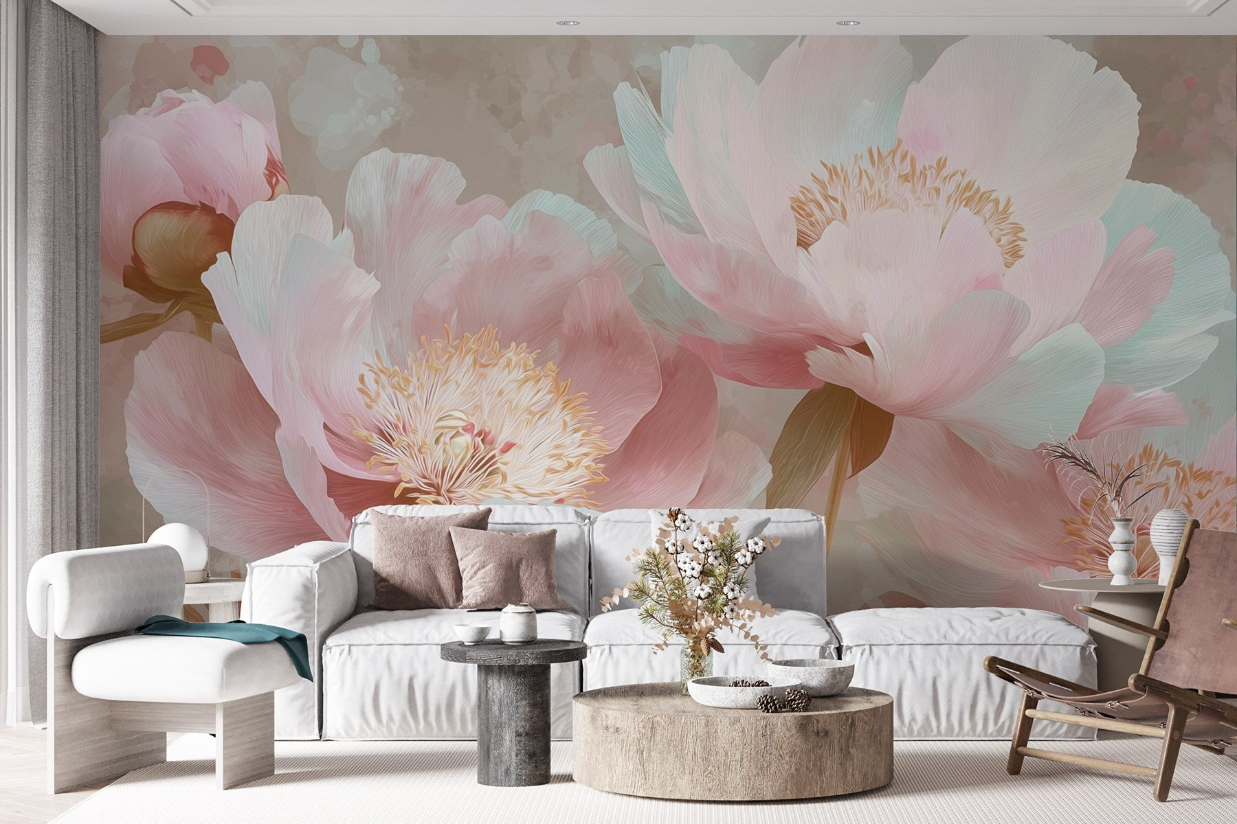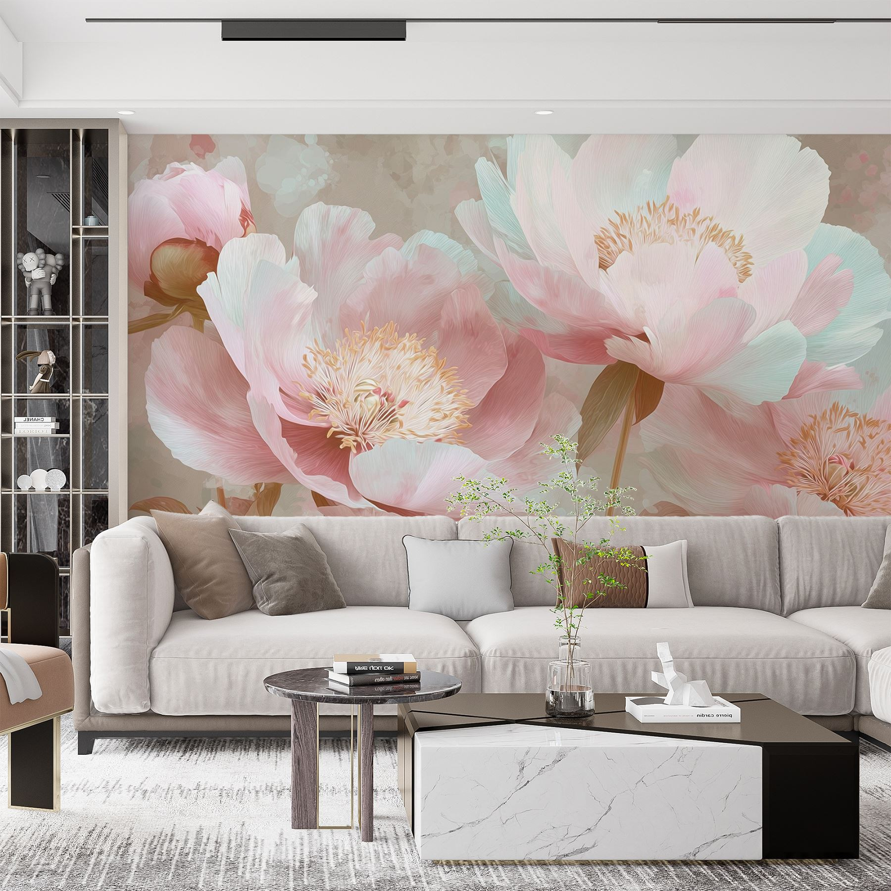 Przekształć dowolny pokój w spokojną ucieczkę dzięki tej uroczej fototapecie z delikatnymi płatkami w miękkich pastelowych odcieniach. To jak spacer po sennym ogrodzie bez pyłków! Wyobraź to sobie: popijając filiżankę herbaty podczas wylegiwania się w przestrzeni ozdobionej tymi delikatnymi kwiatami. Delikatne kolory tworzą zachęcającą atmosferę, która jednocześnie uspokaja i podnosi na duchu. Idealny do rozjaśnienia przytulnego kącika do czytania lub dodania odrobiny uroku do korytarza, z pewnością wywoła uśmiech, a może nawet odrobinę nostalgii. Któż nie chciałby codziennie rozkoszować się kwiatowym pięknem?