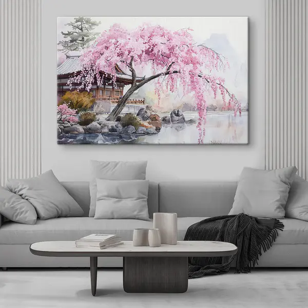 | Sakura w wietrze – obraz z motywem sakury | lekkość, róż pudrowy, sezonowość | romantyczny akcent do sypialni |