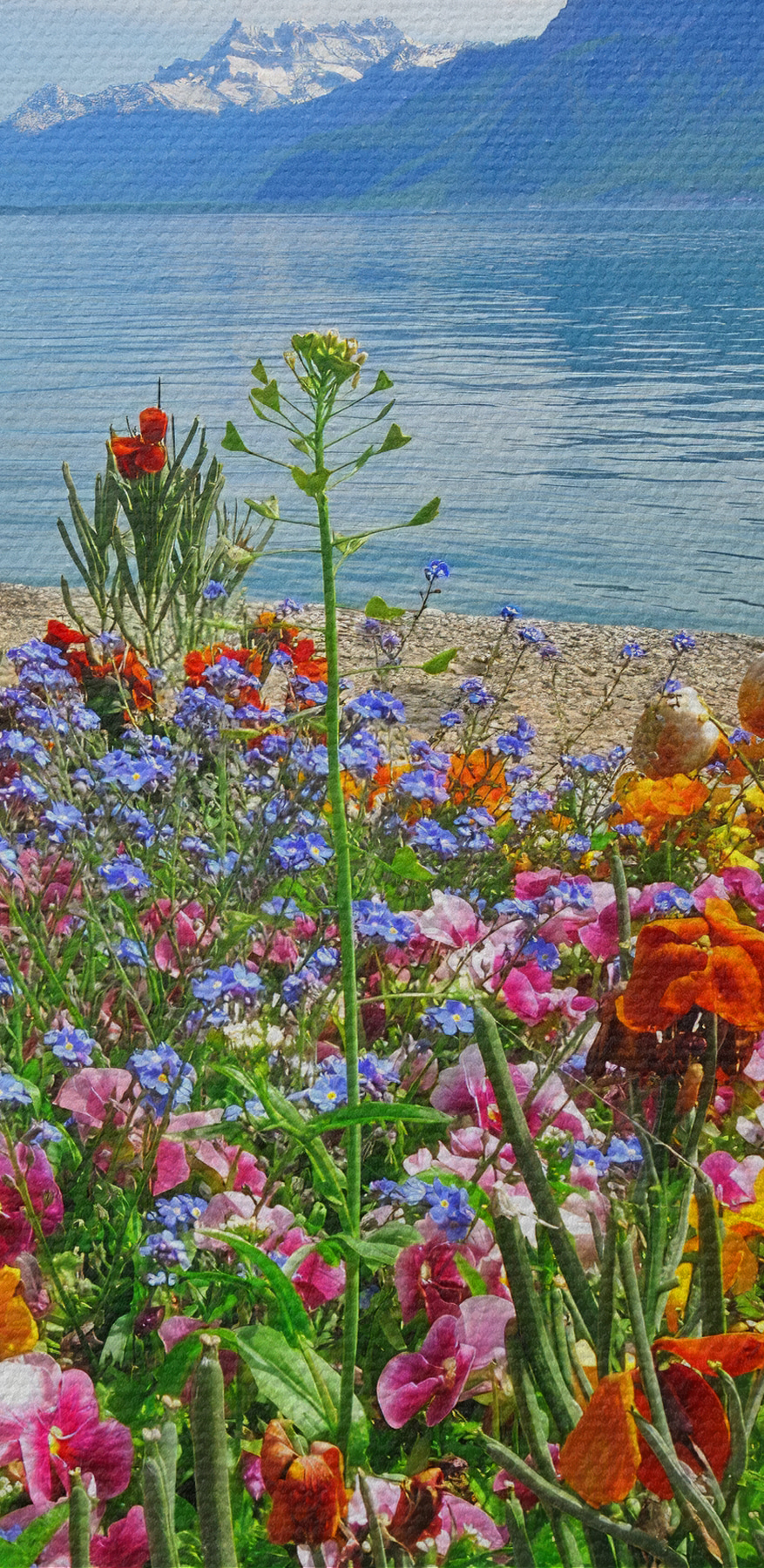Odmień każde pomieszczenie dzięki temu żywemu obrazowi na płótnie “Flower Bed with Flowers and a Lake”. Wyobraź sobie, że przenosisz się nad skąpane w słońcu jezioro z kwiatami w kolorach, których zazdrościłaby tęcza. Każdy kwiat opowiada historię, szepcząc opowieści o radości, cieple i leniwych popołudniach spędzonych nad wodą. Tło delikatnie falującej wody i majestatycznych gór dodaje pogodnego nastroju, idealnego na te chwile, kiedy życie wydaje się zbyt gorączkowe. Powieś go w salonie i obserwuj, jak rozmowy rozkwitają jak same kwiaty. To jak przeniesienie kawałka natury do wnętrza – bez brudu! Dodatkowo, może to zainspirować do spontanicznego planu pikniku, o którym marzyłeś.