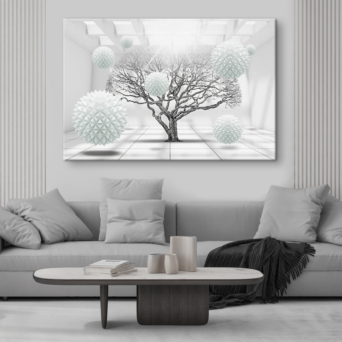 Wyobraź sobie drzewo, odważne i piękne, trzymające sąd w swoim pokoju. Teraz wrzuć kilka kapryśnych białych kul, które unoszą się, jakby miały cały czas na świecie. Ten wydruk na płótnie to nie tylko sztuka; to jak zaproszenie do marzeń. Monochromatyczny klimat? Czysta elegancja. Idealny dla miłośników czerni i bieli, którzy cenią sobie odrobinę natury zmieszaną z odrobiną dziwaczności. To rodzaj elementu, który sprawia, że zastanawiasz się – skąd nadchodzi bryza? Powieś go, pozwól rozmowom płynąć – każdy z pewnością będzie zaintrygowany.