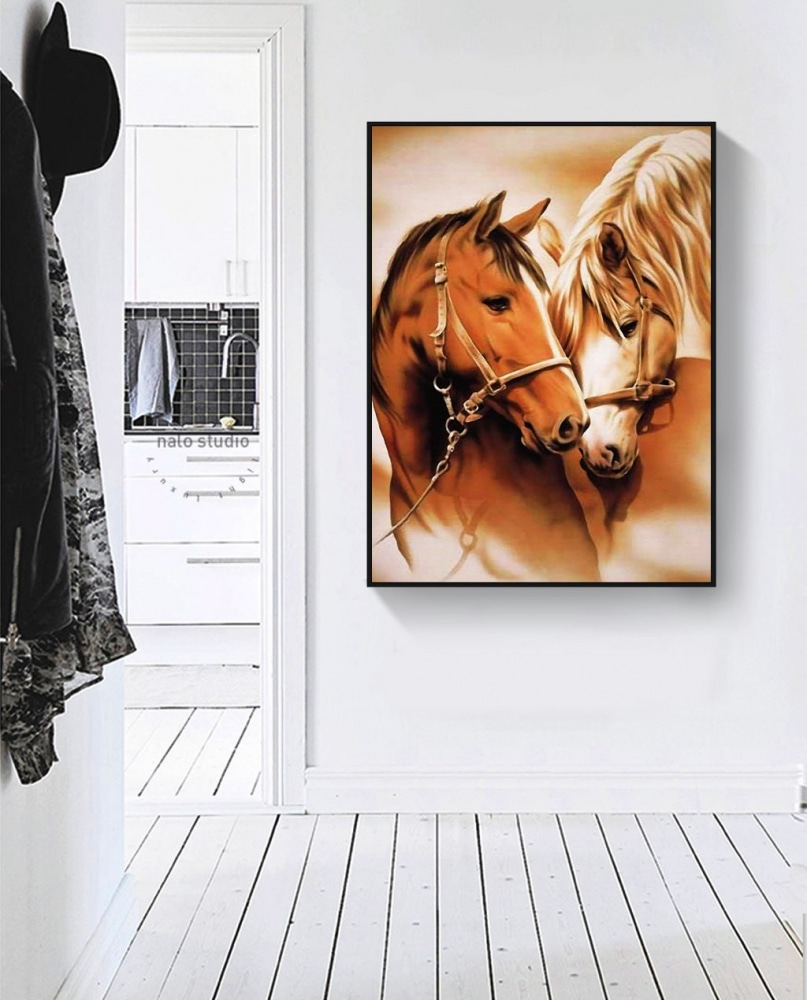 Ten wydruk na płótnie, przedstawiający dwa konie dzielące czułą, spokojną chwilę, jest po prostu uroczy. Wciąga, prawda? Wyobraź to sobie – łagodna scena czystego spokoju i więzi, bezpośrednio na ścianie. Można niemal usłyszeć ciche parsknięcia i poczuć delikatny oddech. Wyobraź to sobie w swoim salonie lub przytulnym kąciku do czytania. Dodaje uspokajającej atmosfery, jakby konie szeptały sekret, który znają tylko one. Dodatkowo, miłośnicy koni, ten jest dla was. To jak przeniesienie kawałka pastwiska prosto do swojej przestrzeni. Zabierze cię na emocjonalną przejażdżkę – za każdym razem, gdy na nią spojrzysz! Założę się, że wywoła też kilka interesujących rozmów. Kto by pomyślał, że prosty obraz może stworzyć tyle ciepła i spokoju? Idealne połączenie!