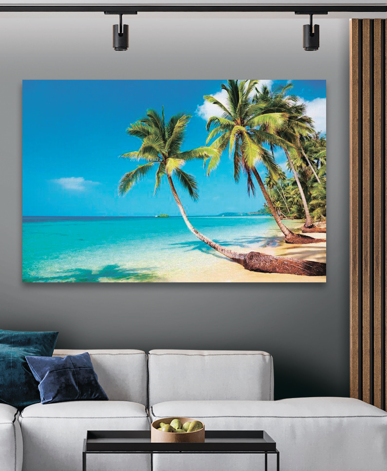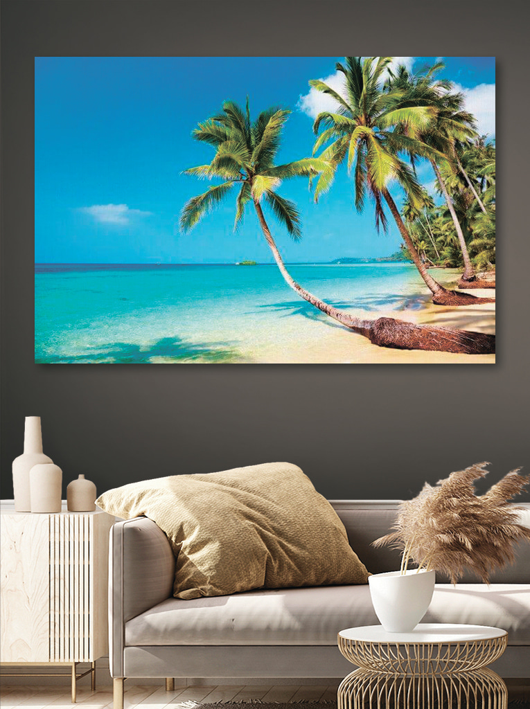 Wyobraź sobie, że wchodzisz do swojego salonu i witasz się z najwspanialszym widokiem palm kołyszących się delikatnie nad nieskazitelną plażą. Ten wydruk na płótnie, trafnie nazwany “Palmy na plaży”, jest jak osobisty kawałek raju – wprost na ścianie. Idealny na te ponure zimowe poranki, kiedy potrzebujesz odrobiny pobudzenia lub po prostu zawsze, gdy pragniesz dawki spokoju natury.