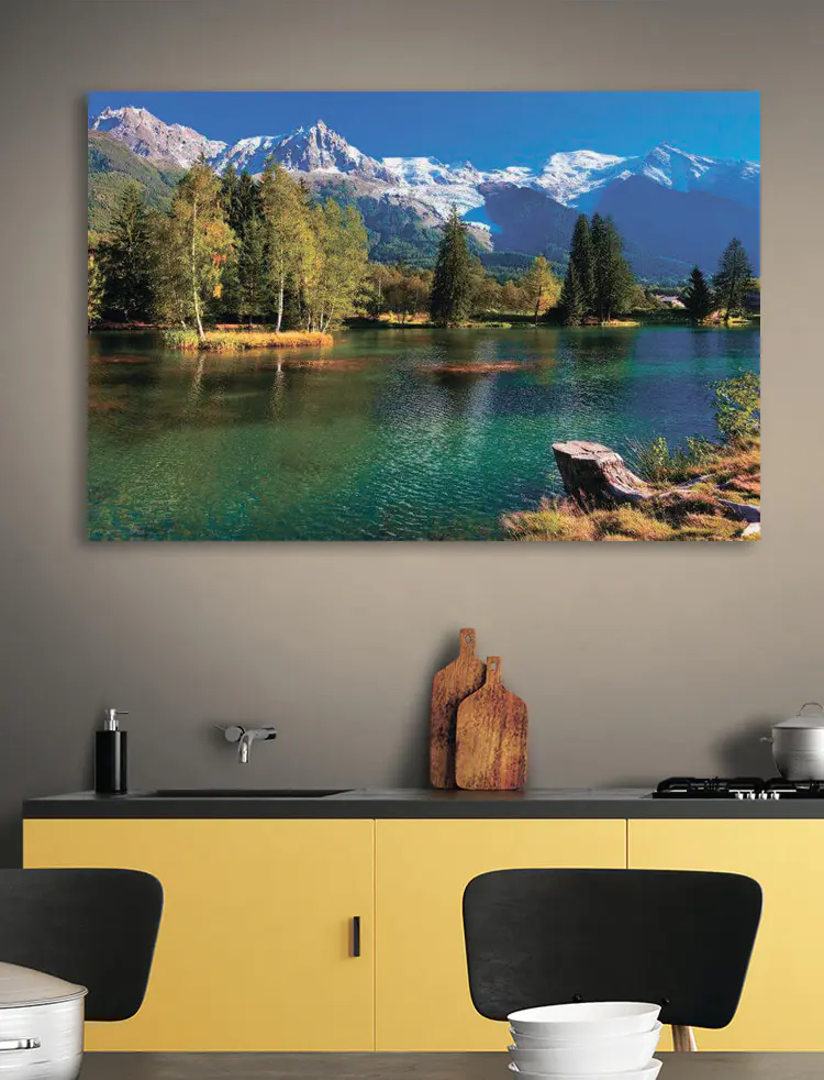 Wyobraź to sobie: Popijasz poranną kawę, wpatrując się w to oszałamiające płótno spokojnego jeziora otoczonego bujnymi drzewami i wysokimi górami. Natychmiast przenosi cię do tego sekretnego leśnego miejsca, w którym siedzisz z książką – a może po prostu marzysz. Głębokie zielenie i błękity dodają spokojnej atmosfery, idealnej do relaksu po długim dniu. A kto nie kocha dobrego widoku na góry? To tak, jakby mieć swój własny kawałek natury bezpośrednio na ścianie. Ponadto jest to część naszych kolekcji “Nature Canvas Art” i “Popular Canvas Art”, więc jest zarówno modna, jak i ponadczasowa. Zdecydowanie przyciąga wzrok!