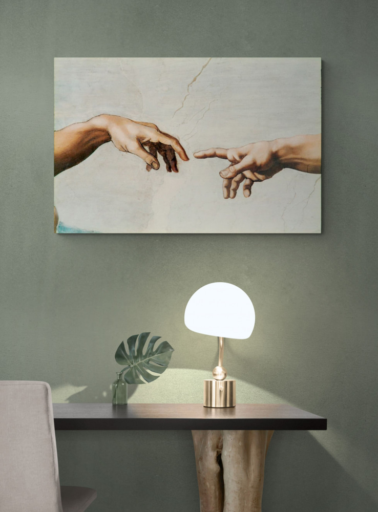 Wyobraź sobie, że masz kawałek historii sztuki w swojej przestrzeni życiowej. Ten wydruk na płótnie “Fingers Reaching Towards Each Other” czerpie inspirację z arcydzieła Michała Anioła. Tak, to kawałek magii Kaplicy Sykstyńskiej – prosto na twoją ścianę. To jedno z tych ponadczasowych dzieł, które porusza coś głęboko w duszy.
