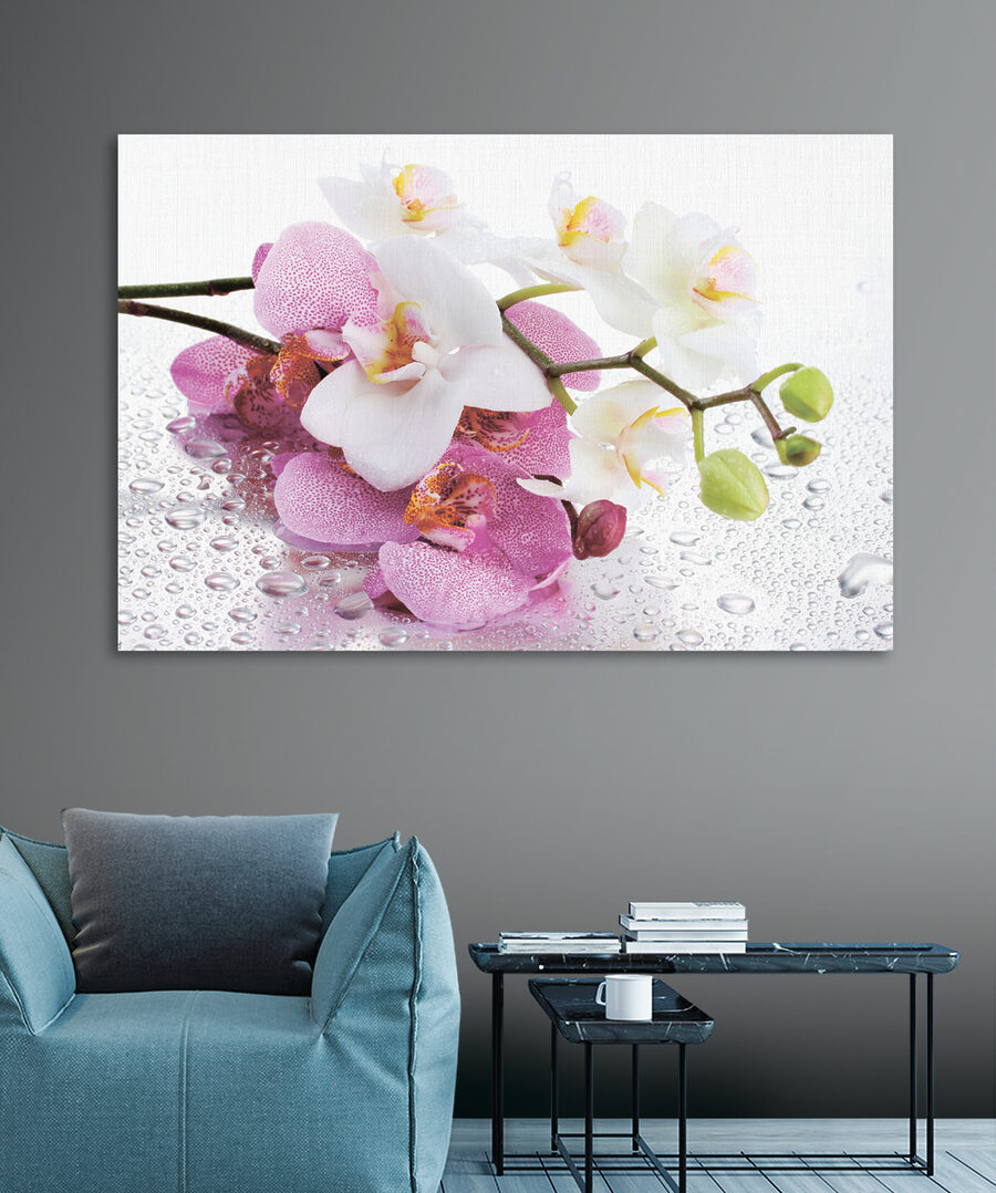 Podnieś swoją przestrzeń dzięki temu oszałamiającemu drukowi na płótnie przedstawiającemu delikatne orchidee całowane przez miękkie krople wody. To jak przeniesienie kawałka natury do wnętrza, bez konewki. Wyobraź sobie, że każdego dnia budzisz się z tym wybuchem koloru – te żywe płatki praktycznie tańczą na płótnie! Idealny do ożywienia salonu lub dodania odrobiny elegancji do sypialni. Dodatkowo, wywołuje odrobinę radości, która przypomina wszystkim, że piękno często znajduje się w najprostszych rzeczach. Kto nie chciałby poczuć się otoczony taką trwałą świeżością? Po prostu powieś go i obserwuj, jak Twoje ściany tchną nowe życie.