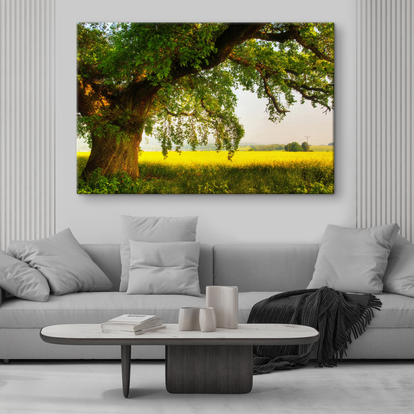 Przenieś spokojne piękno natury do wnętrza dzięki temu wspaniałemu drukowi na płótnie przedstawiającemu majestatyczne drzewo rzucające cień na oświetlone słońcem pole. Wyobraź sobie leniwe popołudnie spędzone pod rozłożystym baldachimem, z delikatną bryzą niosącą słodki zapach kwitnących kwiatów. Idealna do rozjaśnienia każdego pomieszczenia, ta grafika zachęca do marzeń o piknikach i spokojnych ucieczkach. To tak, jakby mieć kawałek natury na ścianie, dzięki czemu każdy dzień jest nieco spokojniejszy. Kto nie chciałby zrelaksować się w tak pięknej przestrzeni? Dodaj odrobinę uroku inspirowanego naturą i pozwól swoim ścianom oddychać!