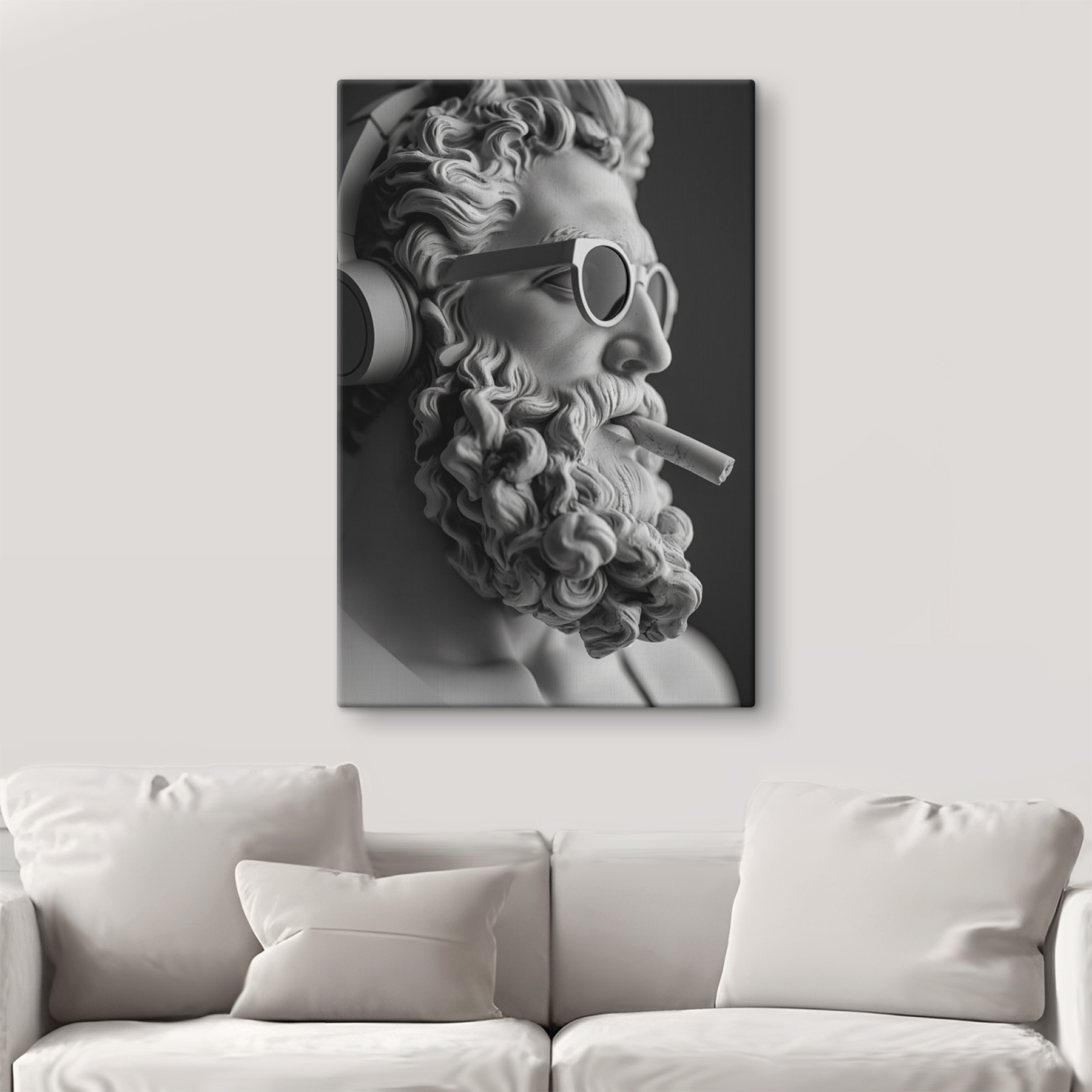 W porządku, porozmawiajmy o “Obraz s26122” – to arcydzieło jest tak fajne, jak brzmi! Wyobraź sobie, że masz to na ścianie, prawda? To nie tylko kolejne płótno; to cały klimat. Otrzymujesz tę epicką starożytną głowę posągu w nowoczesnych okularach i słuchawkach, zaciągającą się papierosem, jakby to nie było nic wielkiego. To jak połączenie starożytności z nowoczesnością – zupełnie wyjątkowe!