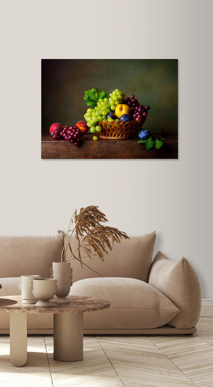 Rozjaśnij swoją przestrzeń dzięki temu żywemu drukowi na płótnie “Basket of Fruit on a Table”. Wyobraź sobie, że wchodzisz do pokoju, w którym wita Cię ten żywy obraz, pełen świeżych winogron, soczystych brzoskwiń i błyszczących śliwek. To jak mini-market bezpośrednio na ścianie, zapraszający do kontemplacji leniwego popołudniowego pikniku, a może po prostu orzeźwiającej przekąski. Ciepłe kolory dodają przytulnego charakteru, idealnego do kuchni lub jadalni. Znajomi mogą zapytać, czy założyłeś biznes owocowy – po prostu uśmiechnij się i pozwól sztuce mówić! To nie tylko dekoracja; to przypomnienie, aby delektować się słodyczą życia.