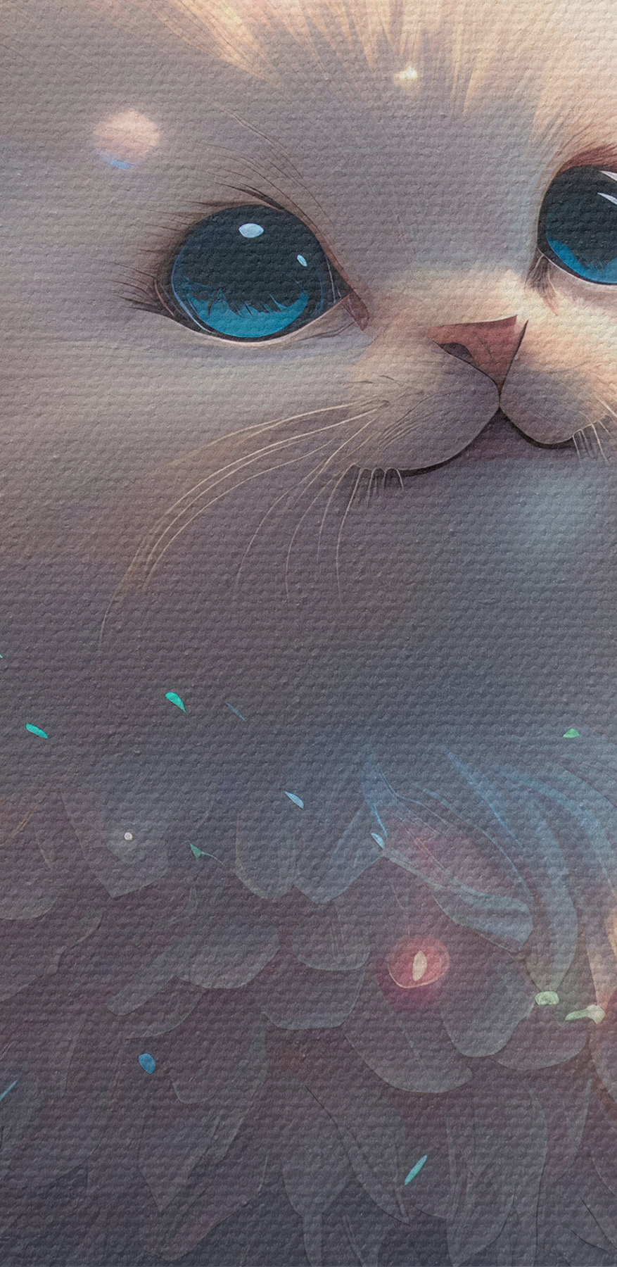 Wnieś odrobinę radości do każdej przestrzeni dzięki temu zachwycającemu wydrukowi na płótnie przedstawiającemu uroczego puszystego kotka otoczonego świecącymi płatkami. Idealna do pokoju dziecięcego lub dowolnego miejsca, w którym przydałaby się odrobina ciepła, ta grafika wywołuje uśmiech na sercu. Wyobraź go sobie nad przytulnym kącikiem do czytania lub w pokoju zabaw – to jak posiadanie małego, puszystego przyjaciela, który nigdy nie opuszcza! Delikatne kolory i słodki wyraz twarzy tworzą spokojną atmosferę, zachęcając do przytulania i marzeń. To nie tylko dekoracja; to mały kawałek szczęścia bezpośrednio na ścianie.