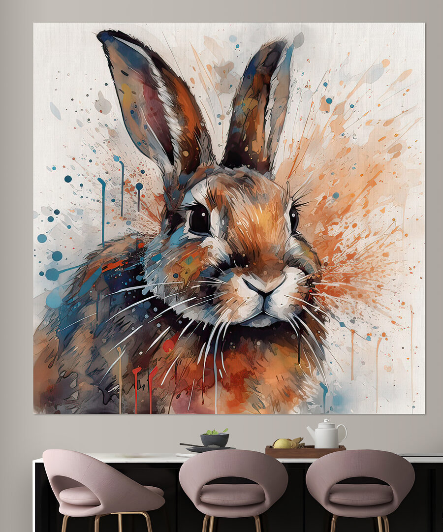 Wyobraź sobie: wchodzisz do swojego pokoju po długim dniu, a tam czeka na ciebie ten słodki, niemal psotny króliczek. To jak małe dzieło sztuki w domowym zaciszu. Mieszanka ciepłych i chłodnych odcieni sprawia, że jest bardzo wszechstronny – może ożywić minimalistyczny salon lub dodać odrobinę zabawy do pokoju dziecięcego. A te małe rozpryski? Dodają odpowiednią ilość artystycznego stylu, nie rzucając się zbytnio w oczy.