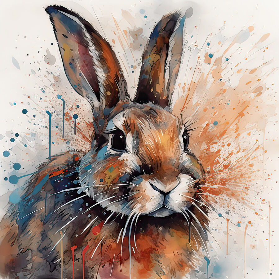 Wyobraź sobie: wchodzisz do swojego pokoju po długim dniu, a tam czeka na ciebie ten słodki, niemal psotny króliczek. To jak małe dzieło sztuki w domowym zaciszu. Mieszanka ciepłych i chłodnych odcieni sprawia, że jest bardzo wszechstronny – może ożywić minimalistyczny salon lub dodać odrobinę zabawy do pokoju dziecięcego. A te małe rozpryski? Dodają odpowiednią ilość artystycznego stylu, nie rzucając się zbytnio w oczy.