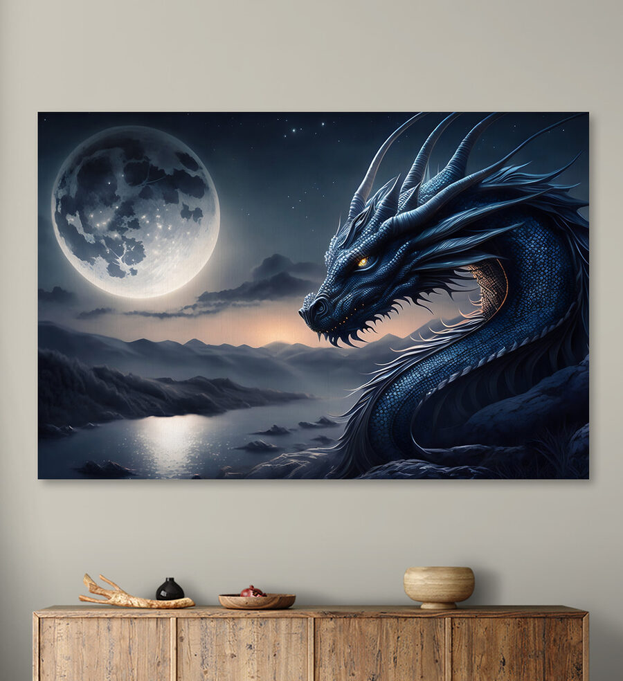 Przekształć dowolny pokój w kapryśną strefę przygód dzięki drukowi na płótnie przedstawiającemu oszałamiającego niebieskiego smoka z majestatycznymi rogami i urzekającym tłem księżyca. Wyobraź to sobie: Twoje dziecko wchodzące do swojego pokoju, oczy rozjaśniające się na widok tego dzikiego, ale przyjaznego stworzenia. To nie tylko sztuka; to iskra wyobraźni, idealna do marzeń o wyprawach i zaczarowanych krainach. Ten tętniący życiem element zachęca do myślenia o magicznych nocach i ekscytujących historiach. To dobry początek rozmowy, a bądźmy szczerzy, kto nie chciałby mieć smoka na oku? Idealny dla małych odkrywców!