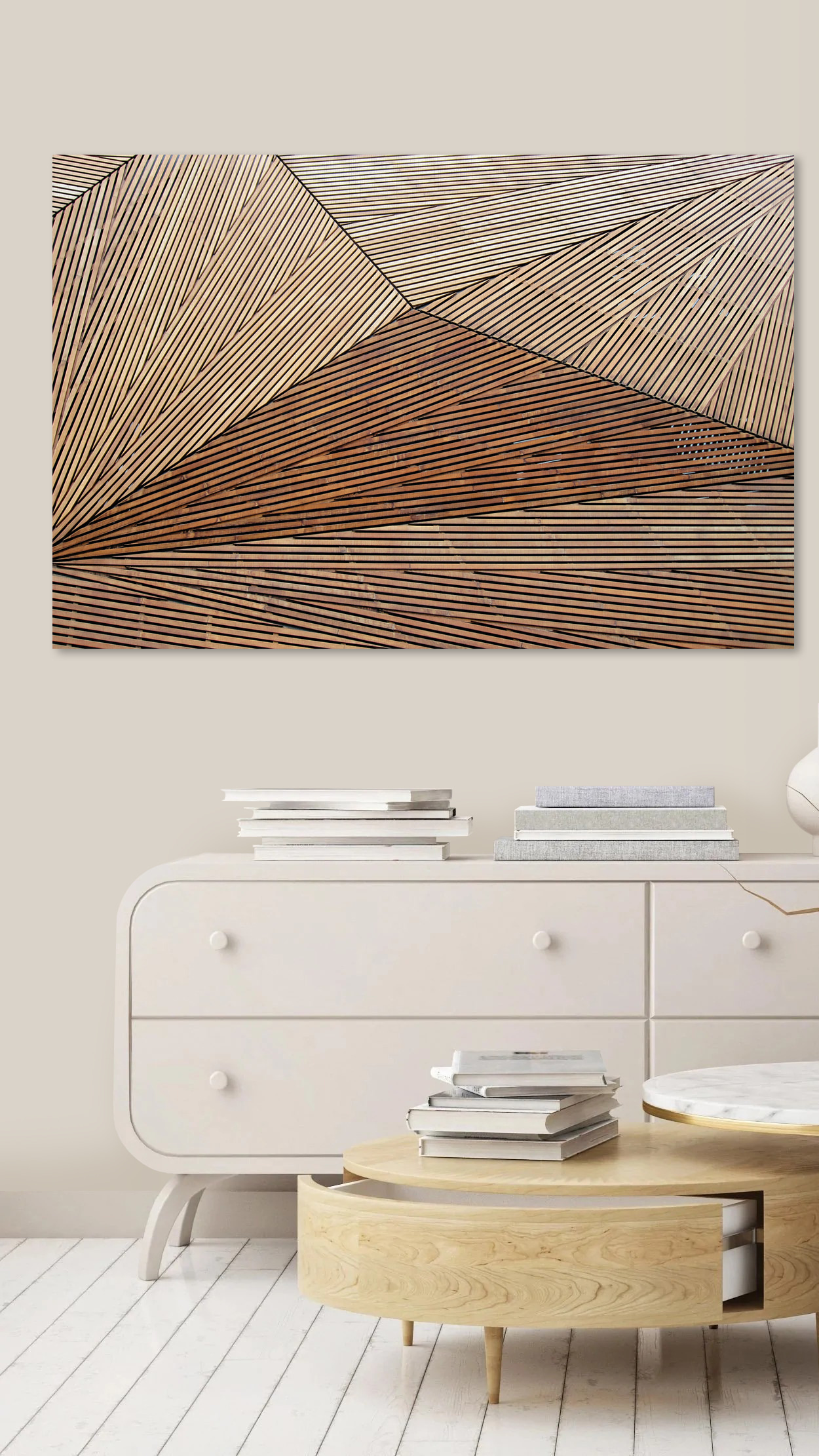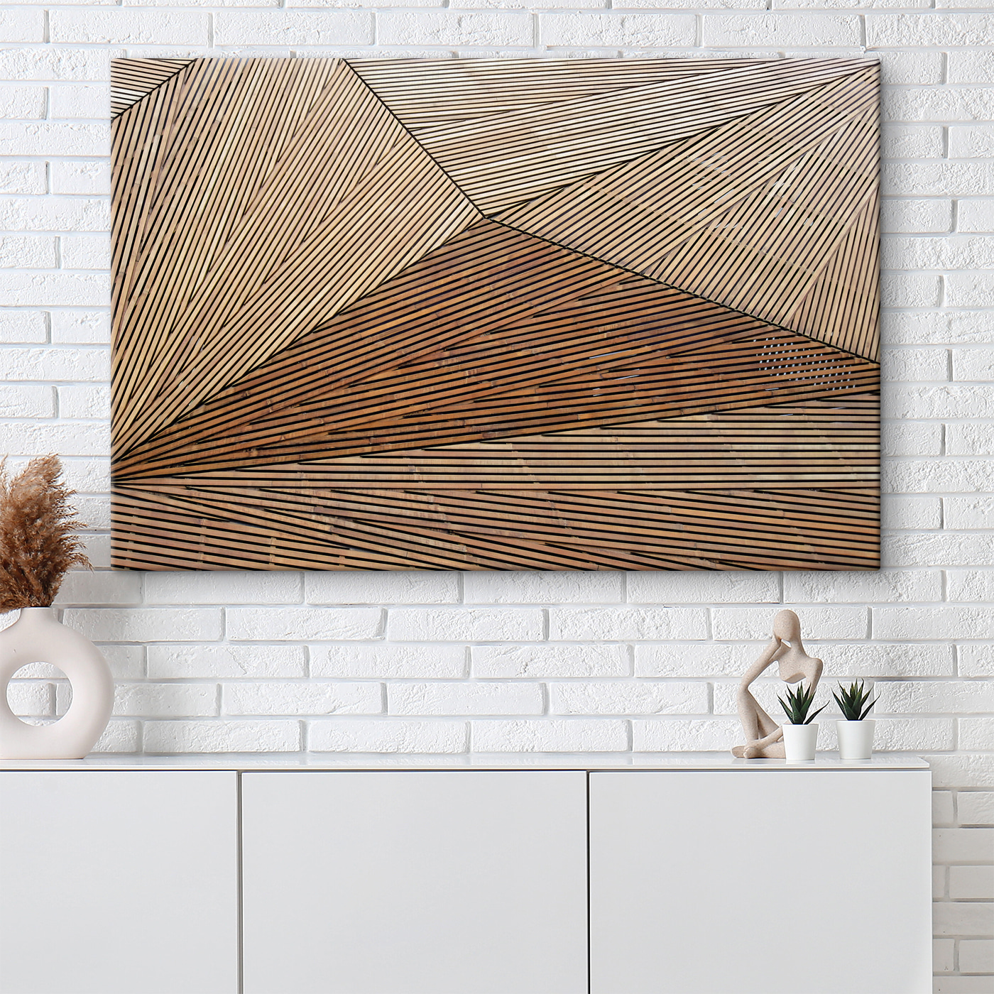 Wyobraź sobie, że wchodzisz do swojego salonu i widzisz to wspaniałe płótno wiszące na ścianie. “Geometric Wooden Pattern with Lines” jest jak współczesny marvel – uderzający, odważny i bez wysiłku szykowny. Idealny dla każdego, kto kocha mieszankę architektury i estetyki boho. Wyobraź sobie drewniane belki zbiegające się w tańcu linii, tworząc atmosferę, która jest zarówno uspokajająca, jak i intrygująca. To jak początek rozmowy, który sprawia, że ludzie mówią: “Whoa, to jest fajne!”. Ponadto pasuje do niemal każdego stylu – niezależnie od tego, czy wybierasz przytulny kącik, czy stylowy loft. To niesamowite, jak dodanie tego jednego elementu może ożywić przestrzeń.