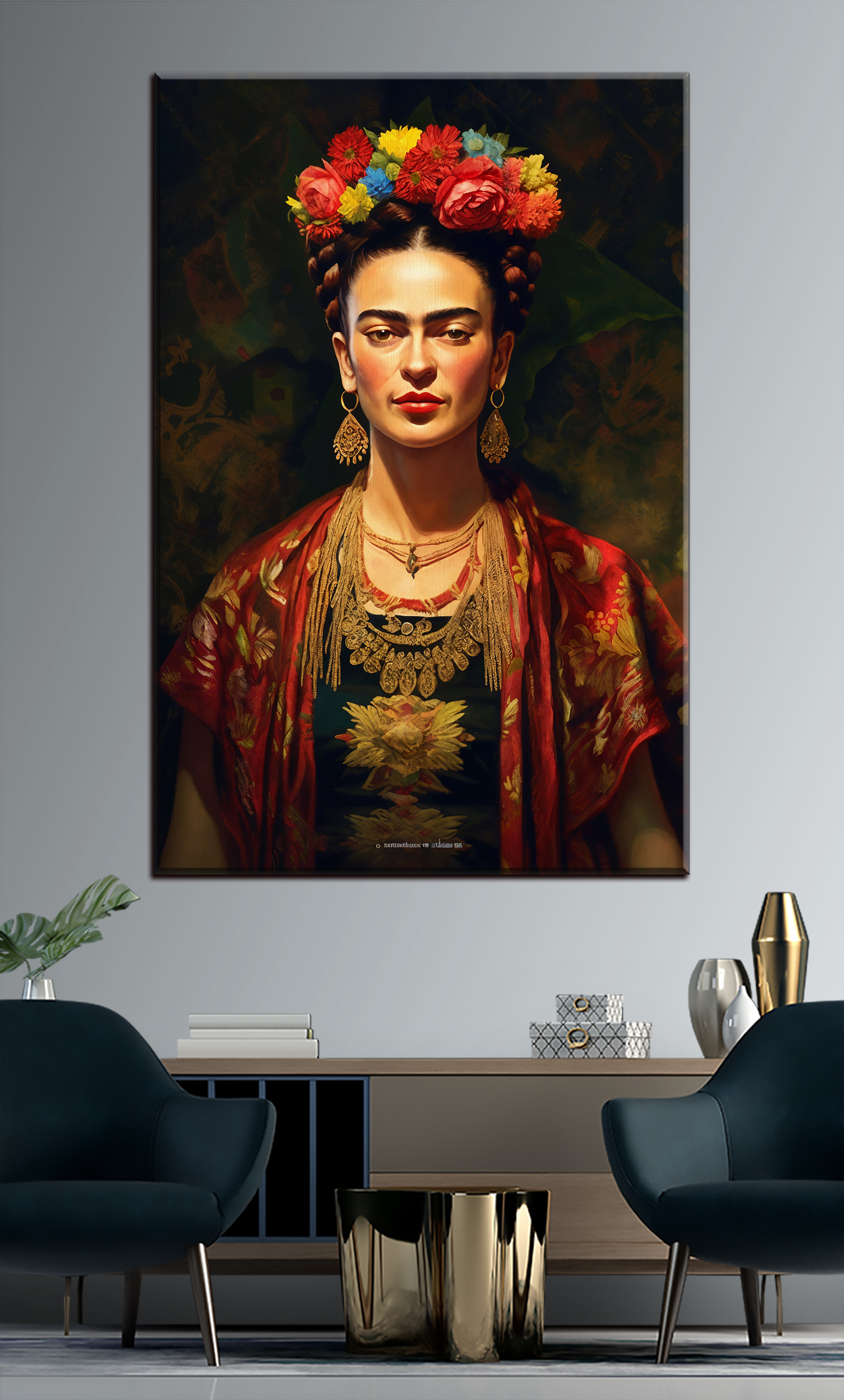 Dodaj odrobinę koloru do każdego pomieszczenia dzięki temu żywemu drukowi na płótnie przedstawiającemu elegancki portret otoczony wesołymi kwiatami. To jak przeniesienie ogrodu do domu, ale bez uciążliwych owadów i harmonogramu podlewania. Wyobraź sobie, że wchodzisz do swojej przestrzeni i natychmiast czujesz ten zastrzyk radości – każdy kwiat tryska osobowością, zachęcając do uśmiechu i ciepła. Idealna do dodania przytulnej atmosfery do salonu lub kreatywnej iskry do biura, ta grafika bez wysiłku łączy piękno ze szczyptą charakteru. To coś więcej niż tylko dekoracja; to mały kawałek szczęścia, który może po prostu zainspirować jedno lub dwa marzenia.