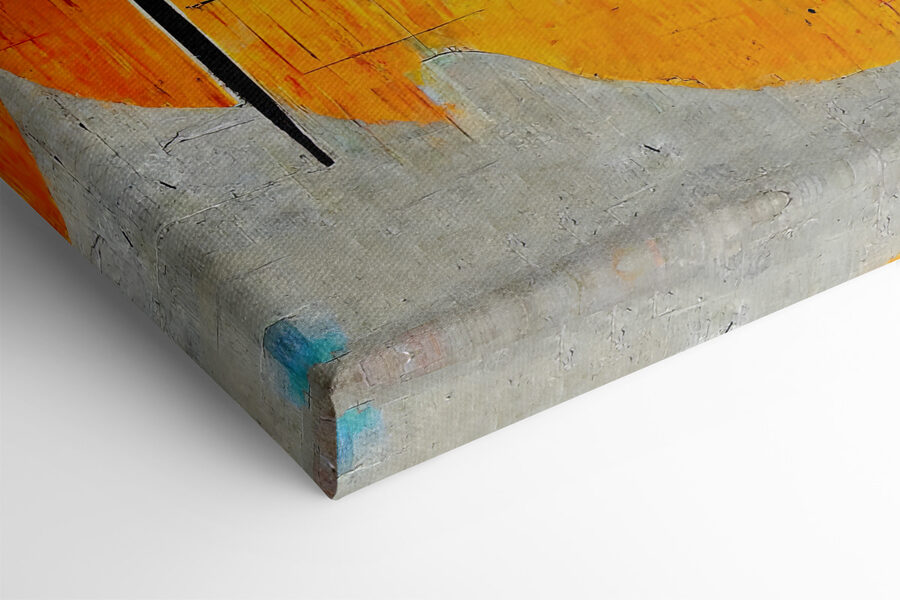 Czarne koło z tajemniczą dziurą przyciąga wzrok. Co się tam dzieje? Kto wie, ale fajnie jest się nad tym zastanowić. Jasne pomarańcze i błękity tańczą wokół niego, jak zespół jazzowy na jam session – wszystko jest zsynchronizowane, ale cudownie nieprzewidywalne. Goście będą zaciekawieni, a może nawet nieco zahipnotyzowani. Idealny do każdej przestrzeni, która potrzebuje odrobiny jazzu bez trąbek. Gdyby sztuka mogła mrugać, ten wydruk na płótnie by to robił.