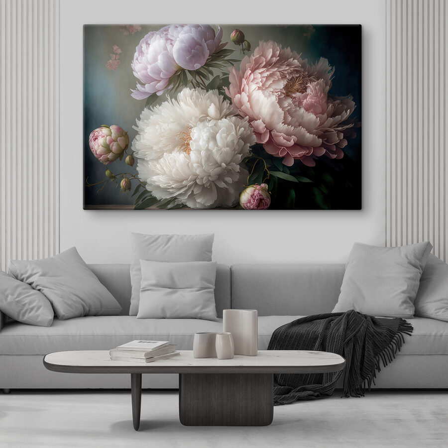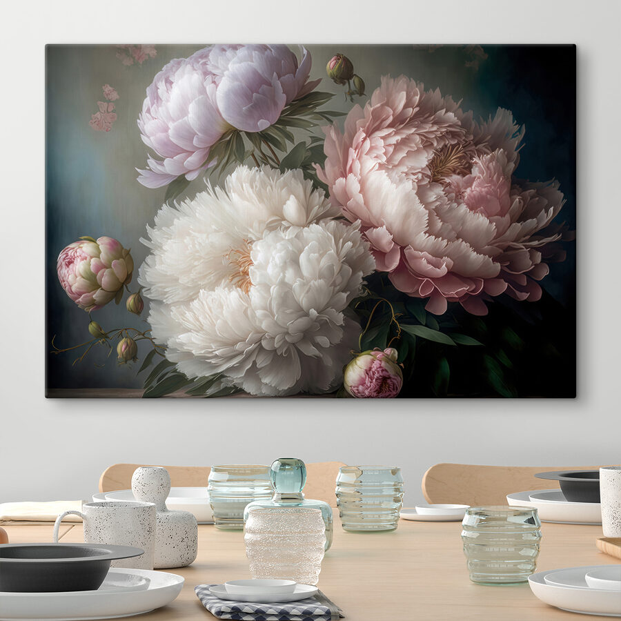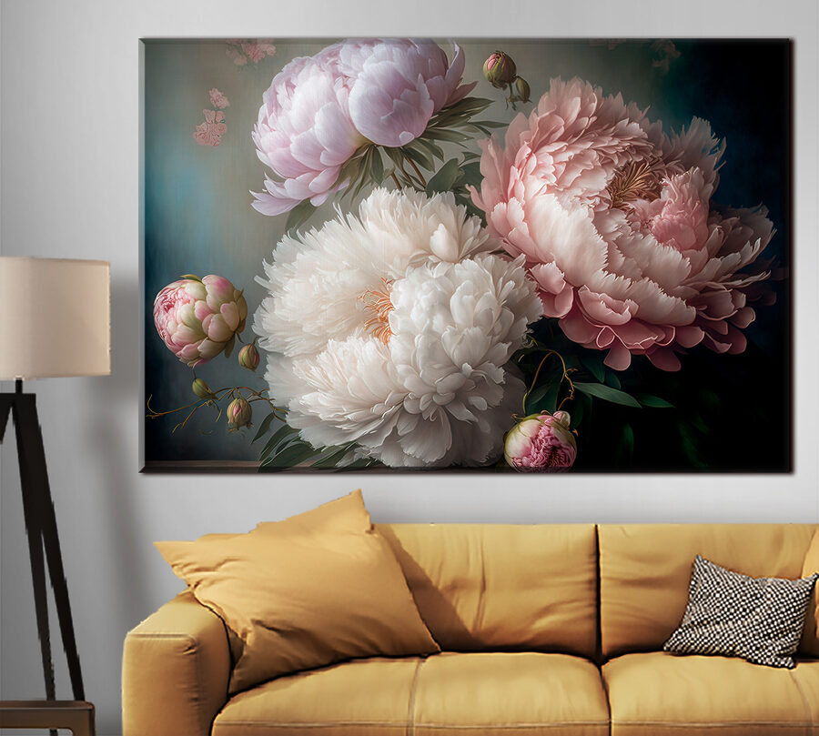 Przekształć dowolną przestrzeń w spokojne miejsce dzięki temu wspaniałemu drukowi na płótnie przedstawiającemu eleganckie piwonie w delikatnym rozkwicie. Kwiaty te, jak przyjaciel, który zawsze przynosi słońce, dodają ciepła i koloru, tworząc zachęcającą atmosferę. Wyobraź sobie popijanie herbaty, podczas gdy ta piękna grafika delikatnie zdobi twoją ścianę, zachęcając do marzeń i szeptów wiosny. Każdy płatek wydaje się opowiadać historię, chwytając za serce. Idealny do rozjaśnienia salonu lub dodania odrobiny elegancji do sypialni, ten kawałek sprawi, że Ty i Twoi goście poczujecie wszystkie dobre wibracje.