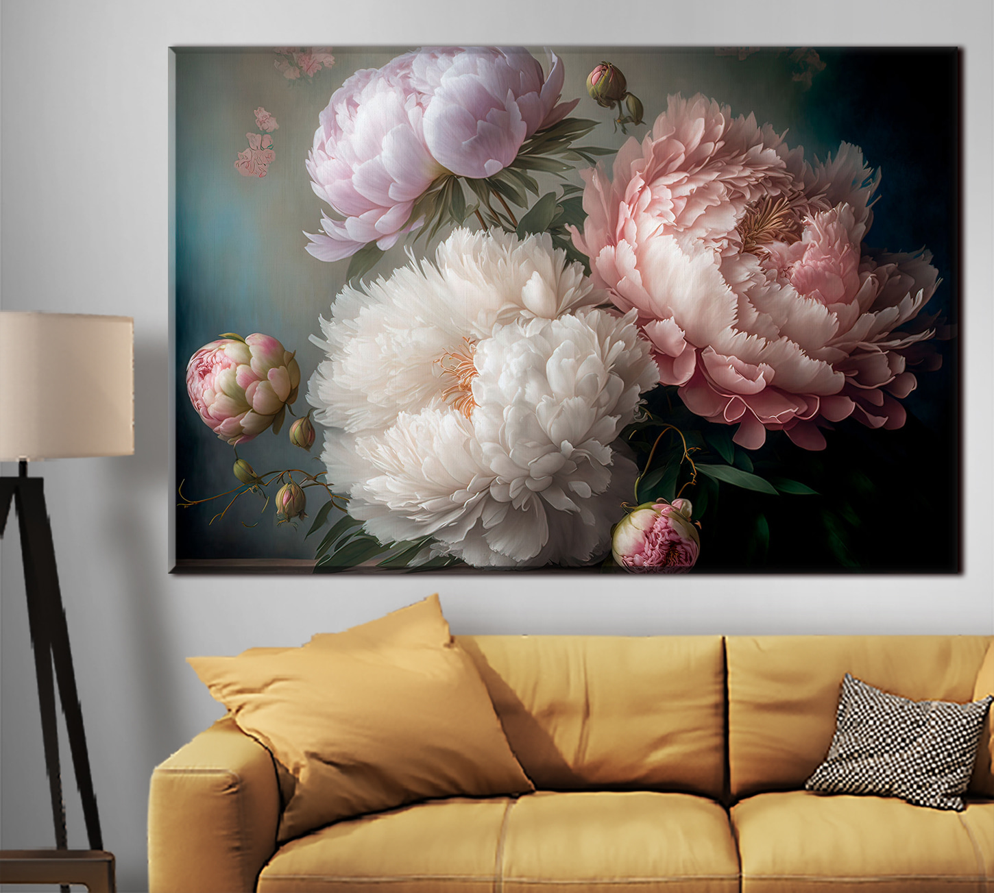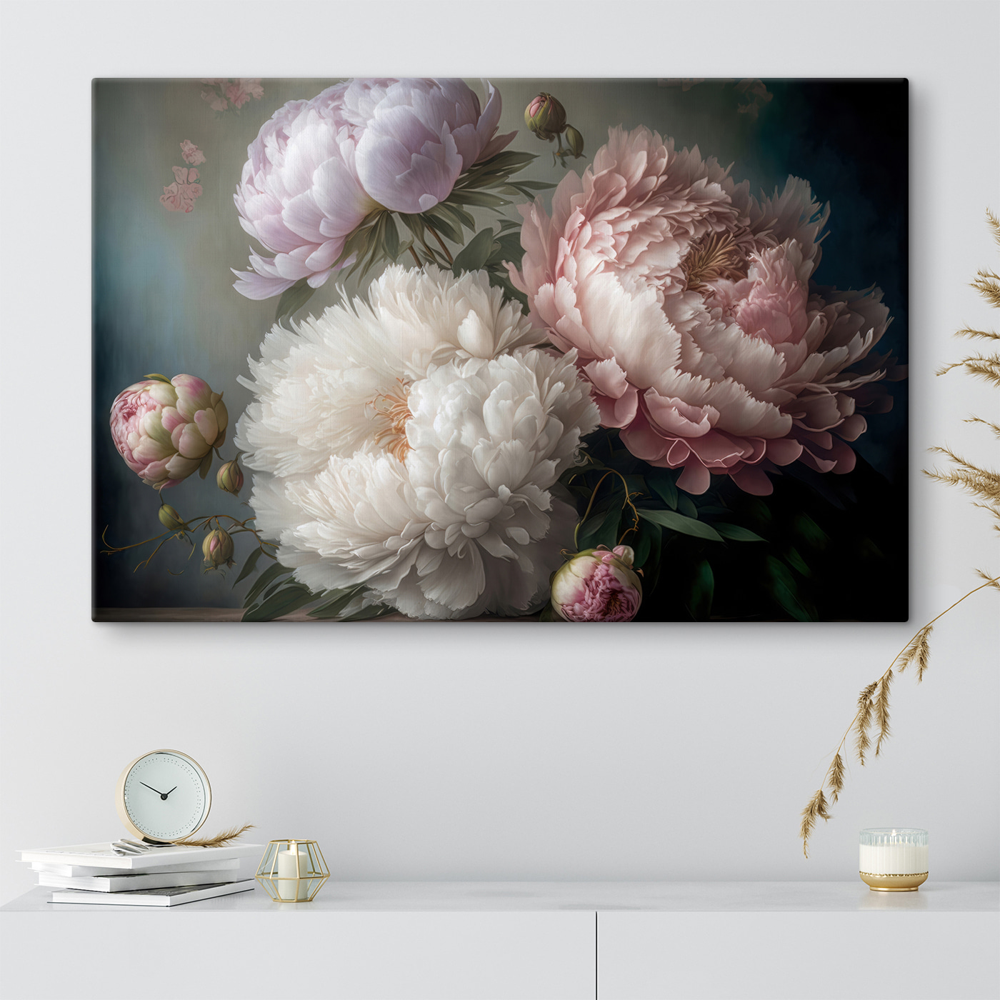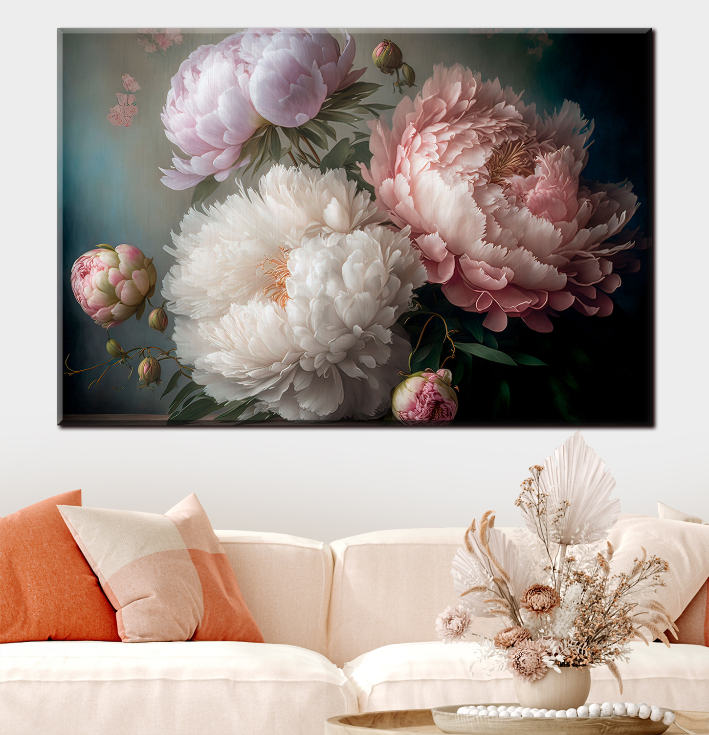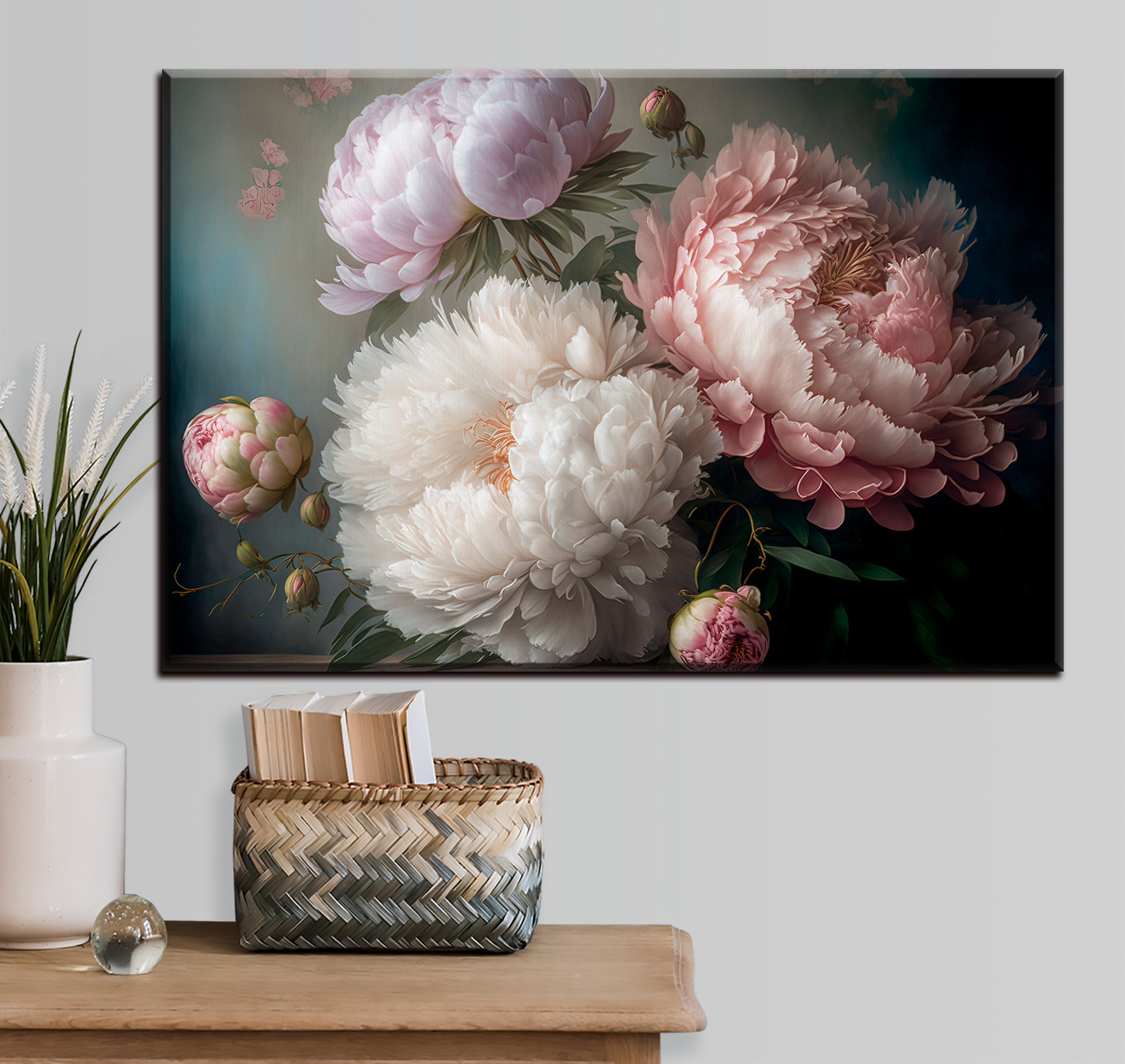 Przekształć dowolną przestrzeń w spokojne miejsce dzięki temu wspaniałemu drukowi na płótnie przedstawiającemu eleganckie piwonie w delikatnym rozkwicie. Kwiaty te, jak przyjaciel, który zawsze przynosi słońce, dodają ciepła i koloru, tworząc zachęcającą atmosferę. Wyobraź sobie popijanie herbaty, podczas gdy ta piękna grafika delikatnie zdobi twoją ścianę, zachęcając do marzeń i szeptów wiosny. Każdy płatek wydaje się opowiadać historię, chwytając za serce. Idealny do rozjaśnienia salonu lub dodania odrobiny elegancji do sypialni, ten kawałek sprawi, że Ty i Twoi goście poczujecie wszystkie dobre wibracje.