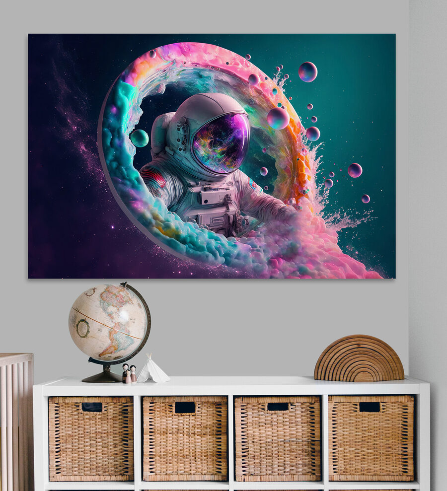 Rozjaśnij swoją przestrzeń dzięki temu przyciągającemu wzrok drukowi na płótnie przedstawiającemu astronautę w wirze żywych kolorów. Idealny dla tych, którzy kochają mieszankę przygody i wyobraźni – to jak podróż do kosmicznej krainy cukierków! Astronauta z przodu i na środku sprawia, że myślisz o nieskończonych możliwościach, podczas gdy kolorowy okrąg wokół niego sprawia wrażenie wybuchu kreatywności i zachwytu. Wyobraź sobie ten obraz na ścianie, pobudzający do rozmów i inspirujący do marzeń. Niezależnie od tego, czy jesteś entuzjastą kosmosu, czy po prostu kimś, kto kocha wyjątkową sztukę, ten element doda zabawnego i magicznego akcentu do Twojego domu. To nie tylko wydruk – to podróż do gwiazd bez opuszczania kanapy.