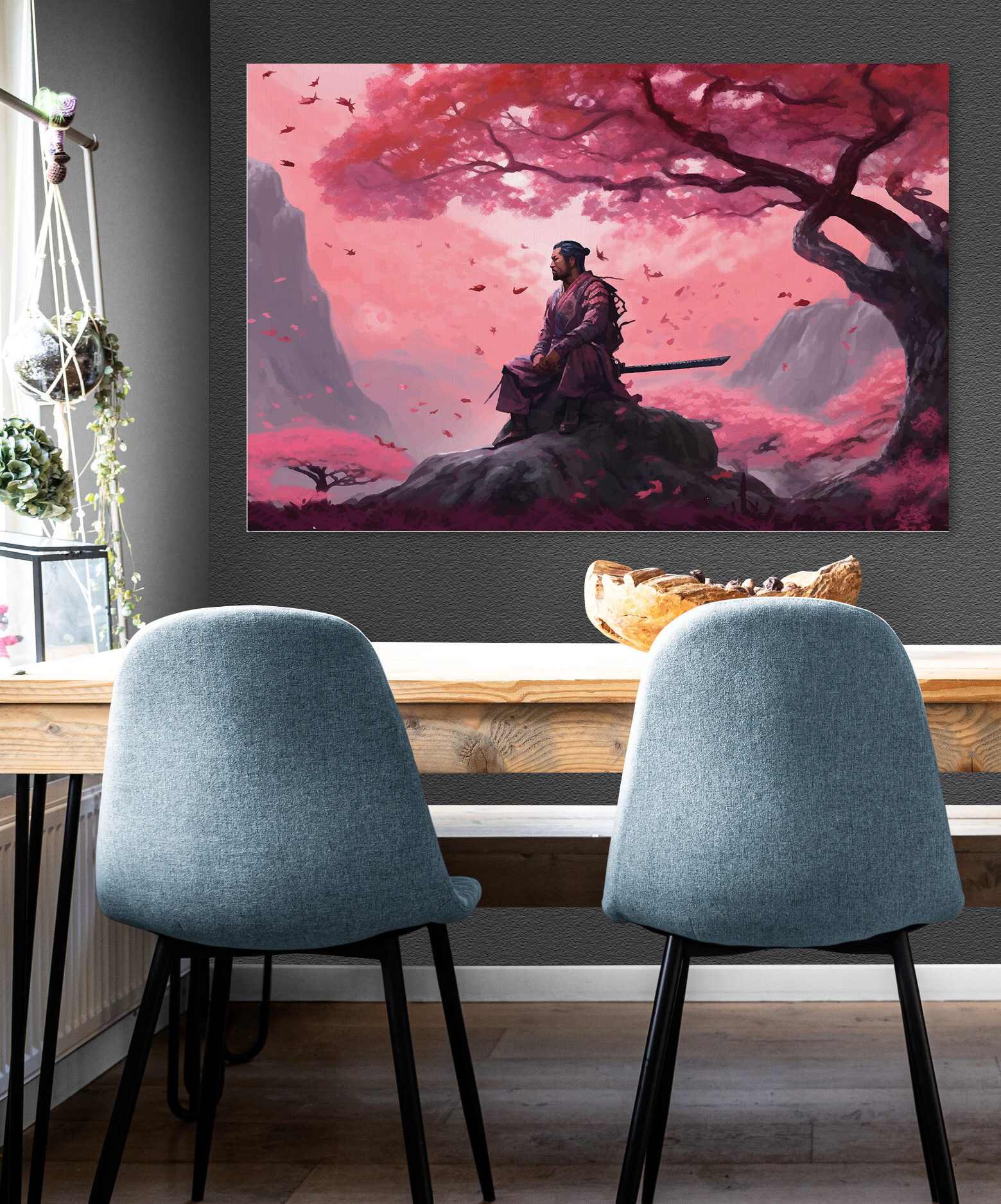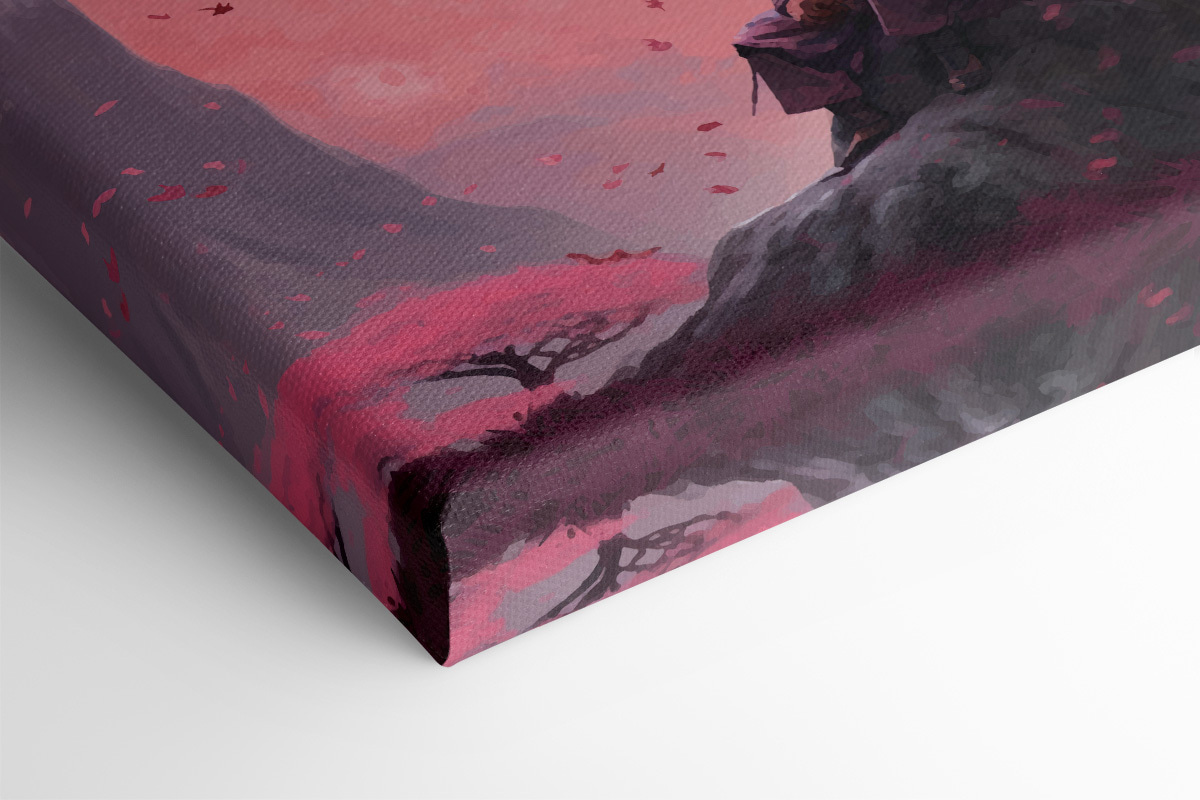 Czy kiedykolwiek myślałeś o dodaniu odrobiny mistycyzmu i spokoju do swojej przestrzeni? Ten obraz na płótnie zatytułowany “Man Sitting on a Rock with a Sword” właśnie to robi. Ma spokojny klimat – wyobraź sobie, że siedzisz pod niebem pomalowanym w czarujących odcieniach różu, z wojownikiem zagubionym w myślach, podczas gdy wokół tańczą płatki kwiatów wiśni. Idealny, jeśli chcesz stworzyć spokojny kącik w domu. To dziwaczna mieszanka – pasuje do kwiatów, ale jest pełna cichej siły i kontemplacji. Sprawia, że marzysz, prawda? Idealny do zastanowienia się nad małymi życiowymi zagadkami lub po prostu dodania fajnego, unikalnego akcentu do wystroju.