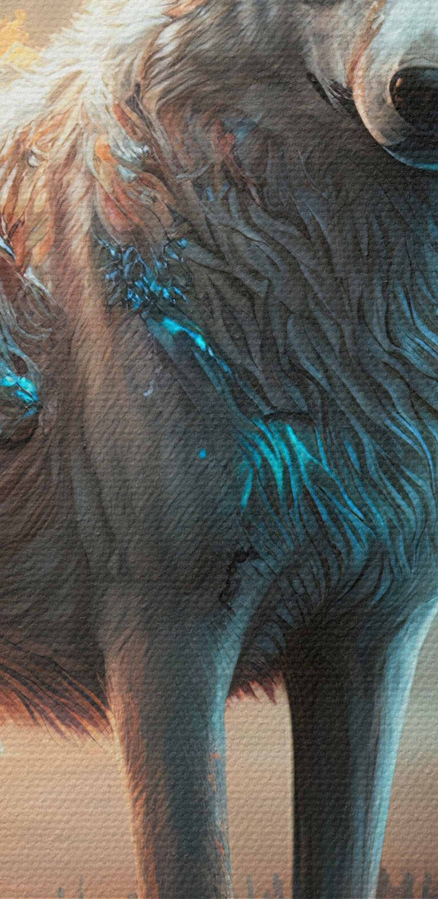 Wyobraź sobie, że popijasz herbatę, czując delikatny blask zmierzchu, gdy wilk wydaje się niemal żywy, a jego spojrzenie jest jednocześnie zacięte i pocieszające. To tak, jakby mieć mądrego towarzysza zawsze gotowego do inspirowania. Idealne do każdej przestrzeni, w której przydałaby się odrobina cudowności, to płótno zaprasza szepty natury i nieopowiedziane historie do każdego pomieszczenia. Niech pobudzi Twoją wyobraźnię!