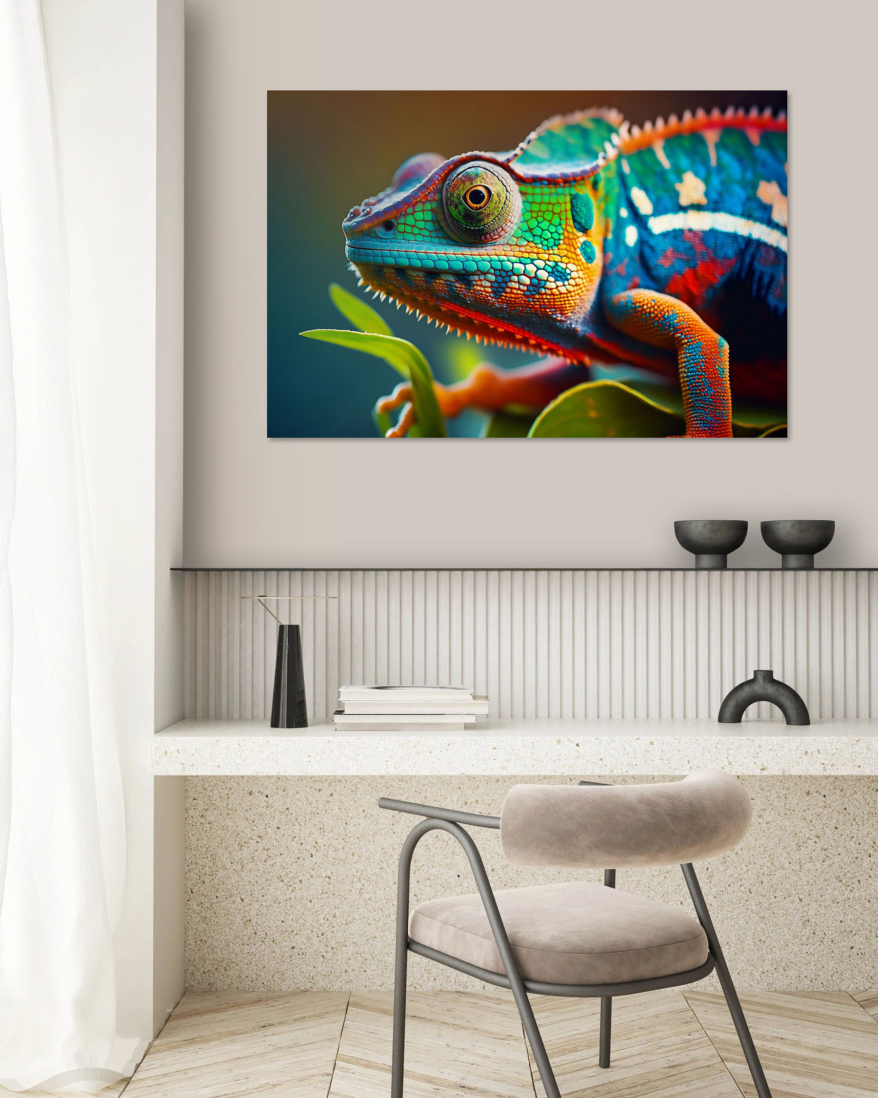Wnieś odrobinę dzikiej natury do swojego domu dzięki obrazowi na płótnie “Colorful Lizard on a Leaf”. Ten żywy obraz przedstawia olśniewającą jaszczurkę, która wygląda na gotową do skoku prosto z płótna. Wyobraź sobie, że wisi w przytulnym salonie lub rozjaśnia nudny korytarz – mowa o natychmiastowej poprawie nastroju! Mieszanka kolorów może wywołać radość niczym znalezienie idealnej filiżanki kawy w poniedziałkowy poranek. Ponadto, jest to świetny początek rozmowy; przyjaciele mogą po prostu przysiąc, że mrugnął do nich okiem! Idealny dla miłośników przyrody lub każdego, kto chce wprowadzić odrobinę osobowości do swojej przestrzeni. Niech ta dziwaczna jaszczurka będzie twoją małą tajemnicą; może nawet zainspirować niektóre skandaliczne marzenia o przygodach w dżungli. Kto by pomyślał, że wystrój może być tak zabawny?