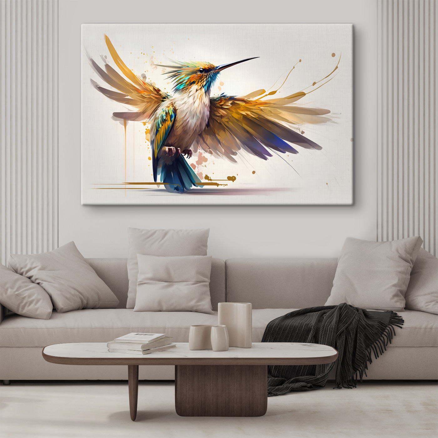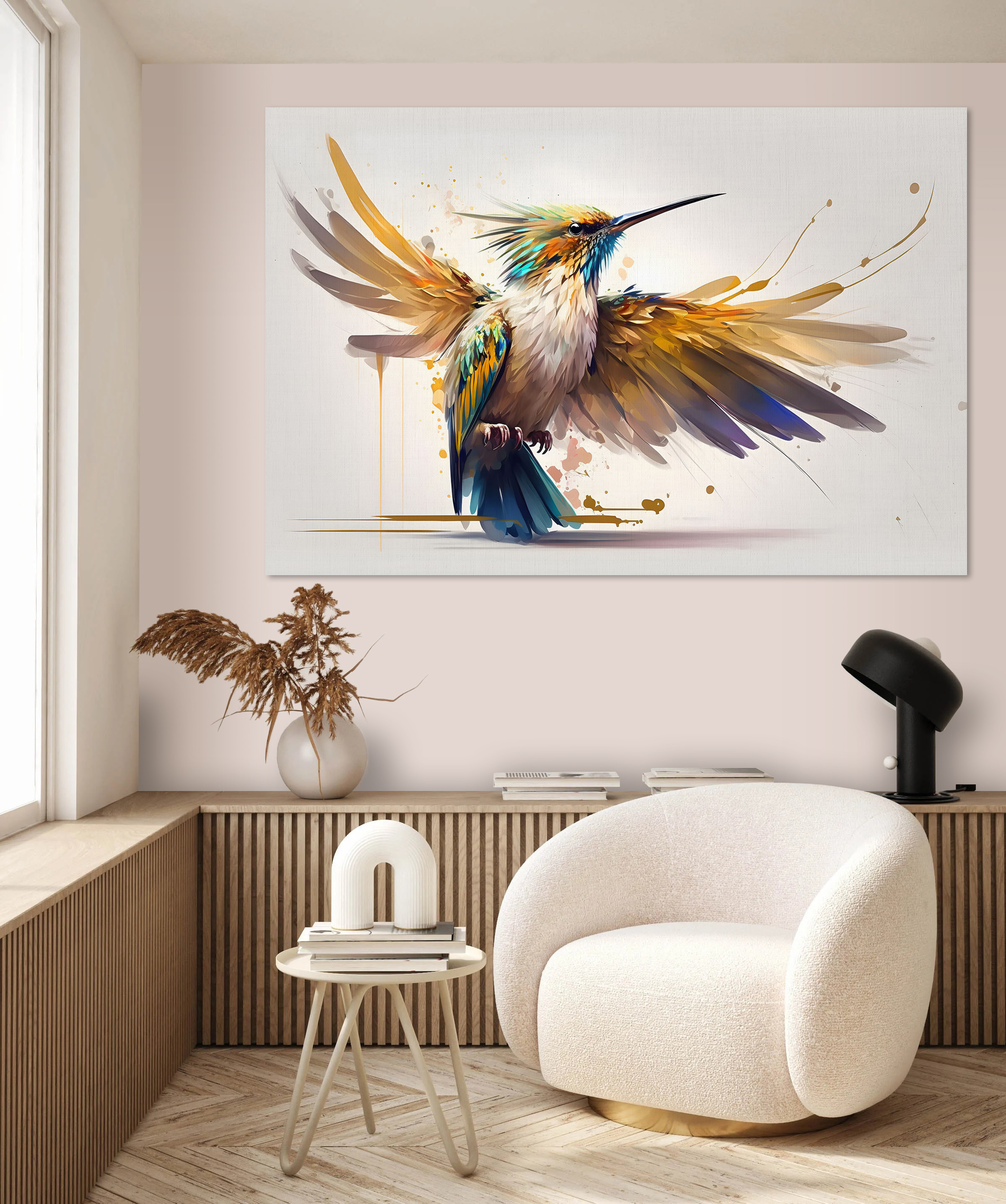 Wyobraź sobie, że wchodzisz do swojego salonu i bum – na ścianie pojawia się eksplozja kolorów i życia. Ten wydruk na płótnie przedstawiający ptaka z rozpostartymi skrzydłami jest jak kawałek tropików w Twoim domu. Te kolory są tak żywe, prawie jakbyś miał tęczę uwięzioną w piórach. A szczegóły – można niemal poczuć delikatne trzepotanie, patrząc na nie. Jest zabawny i energetyczny, a jednocześnie ma w sobie coś kojącego. Idealny wybór do przytulnego kącika, w którym popijasz kawę, wpatrując się w to piękno i marząc o przygodach. Idealny dla każdego, kto kocha odrobinę artyzmu natury w swoim gniazdku.