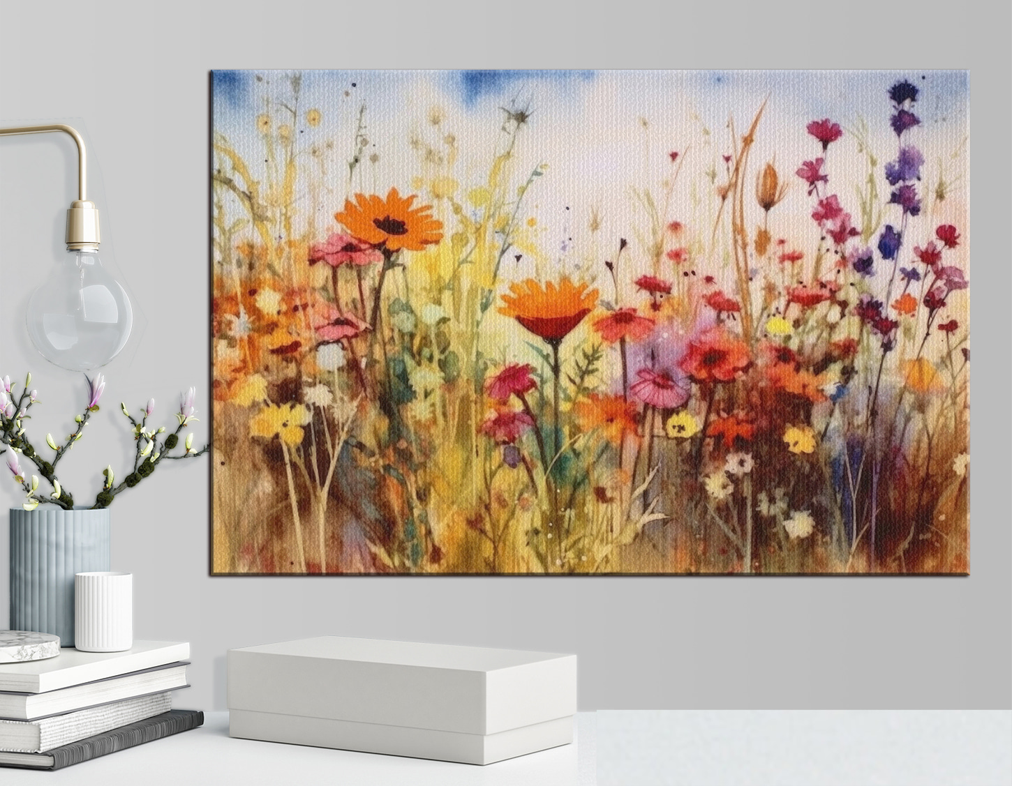 Wyobraź sobie, że wchodzisz na pole dzikich kwiatów za każdym razem, gdy wchodzisz do swojego pokoju. Ten obraz na płótnie “Vibrant Wildflowers in Watercolor Painting” właśnie to robi! To jak eksplozja wiosennych kolorów przez cały rok. Technika akwareli nadaje mu senny, niemal magiczny klimat, jakbyś zaglądał przez okno na słoneczną łąkę. Umieść go w swoim salonie lub sypialni i zobacz, jak natychmiast rozjaśnia przestrzeń. Kolory są tak żywe, że można poczuć zapach kwiatów i ciepłą bryzę. Idealny dla każdego, kto kocha naturę, kwiaty i odrobinę kaprysu w swoim wystroju. Ponadto pasuje do kategorii obrazów na płótnie Flowers, Popular Canvas Art i Watercolor Canvas Art. To ten mały kawałek radości, który chciałbyś budzić każdego ranka.