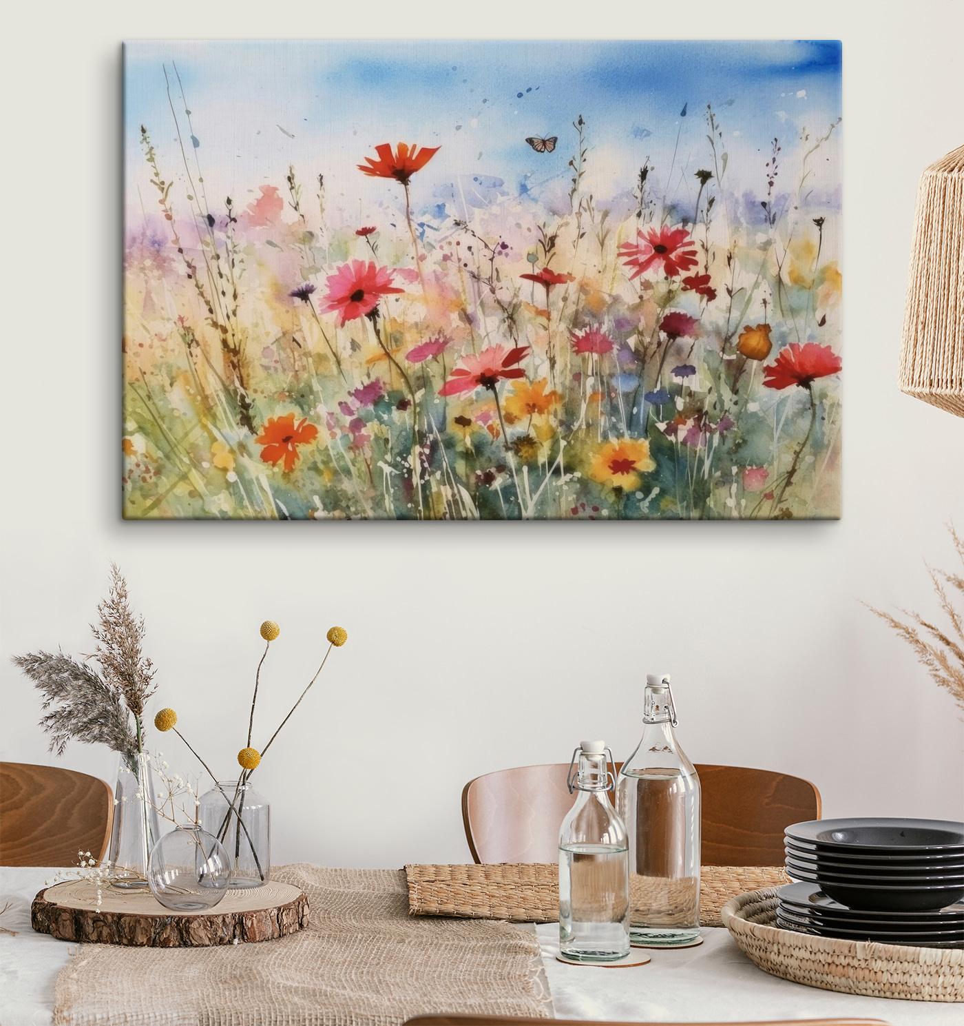 Przedstawiamy wydruk na płótnie “Butterfly Dances Over Wildflower Field” – to jak przeniesienie odrobiny lata do Twojego domu! Wyobraź to sobie: popijasz poranną kawę, a tam jest senna akwarelowa scena z polnymi kwiatami kołyszącymi się delikatnie na wietrze i delikatnym motylem robiącym swoje. To feeria kolorów – różów, fioletów i pomarańczy, które mieszają się ze sobą jak paleta natury. Ta grafika ma magiczny, beztroski klimat, który sprawia, że chce się wziąć głęboki oddech i uśmiechnąć. Idealna do każdego pomieszczenia, które potrzebuje odrobiny radości. Co więcej, nie jest to obraz tylko dla miłośników kwiatów – mówię ci, każdy, kto go zobaczy, poczuje się trochę szczęśliwszy, trochę lżejszy. Więc śmiało, niech to piękno zatańczy w twoim sercu i domu.