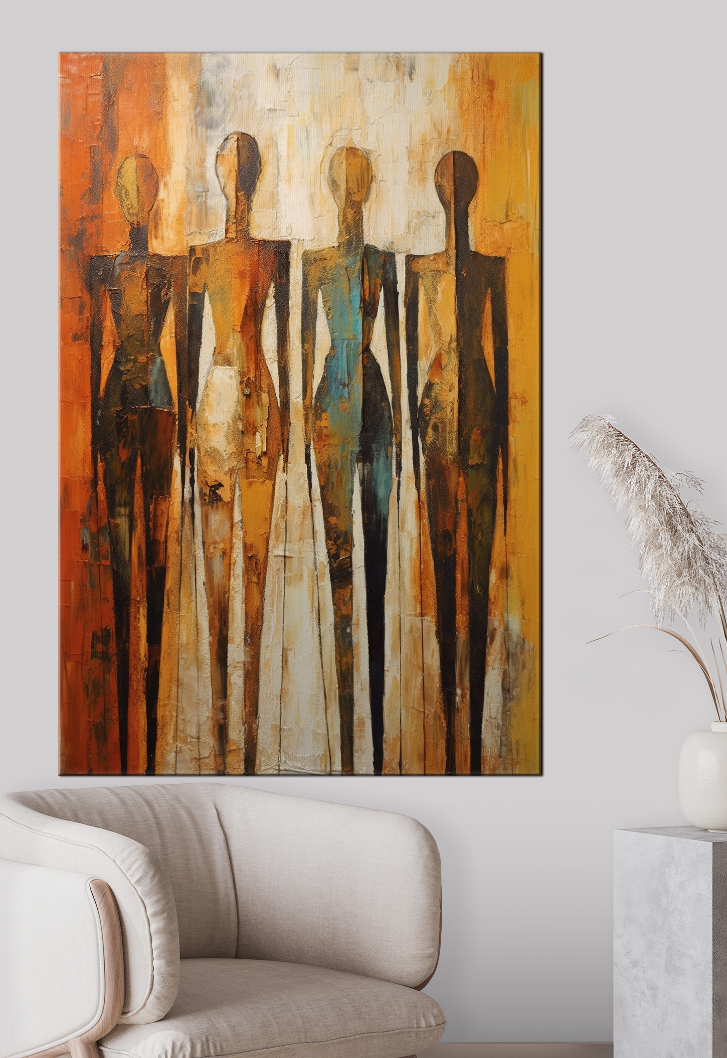 Wejdź do świata tętniącego ciekawością dzięki temu obrazowi na płótnie przedstawiającemu grupę ludzi. Wyobraź sobie ich historie – ciche rozmowy, wspomnienia zachodu słońca lub rytm muzyki wyczuwalny w ich abstrakcyjnych formach. Ciepłe odcienie tańczą razem, jak ulubiony przytulny sweter w rześki jesienny dzień, wypełniając przestrzeń poczuciem wspólnej obecności. Idealne na pustą ścianę, która pragnie odrobiny osobowości. To nie tylko sztuka; to nutka tajemniczości, odrobina ciepła i całe mnóstwo charakteru. Umieść go w swoim salonie lub gabinecie – i obserwuj, jak staje się natychmiastowym początkiem rozmowy! Zrelaksuj się, ciesz się i pozwól swojej wyobraźni wędrować za każdym razem, gdy na nią spojrzysz.