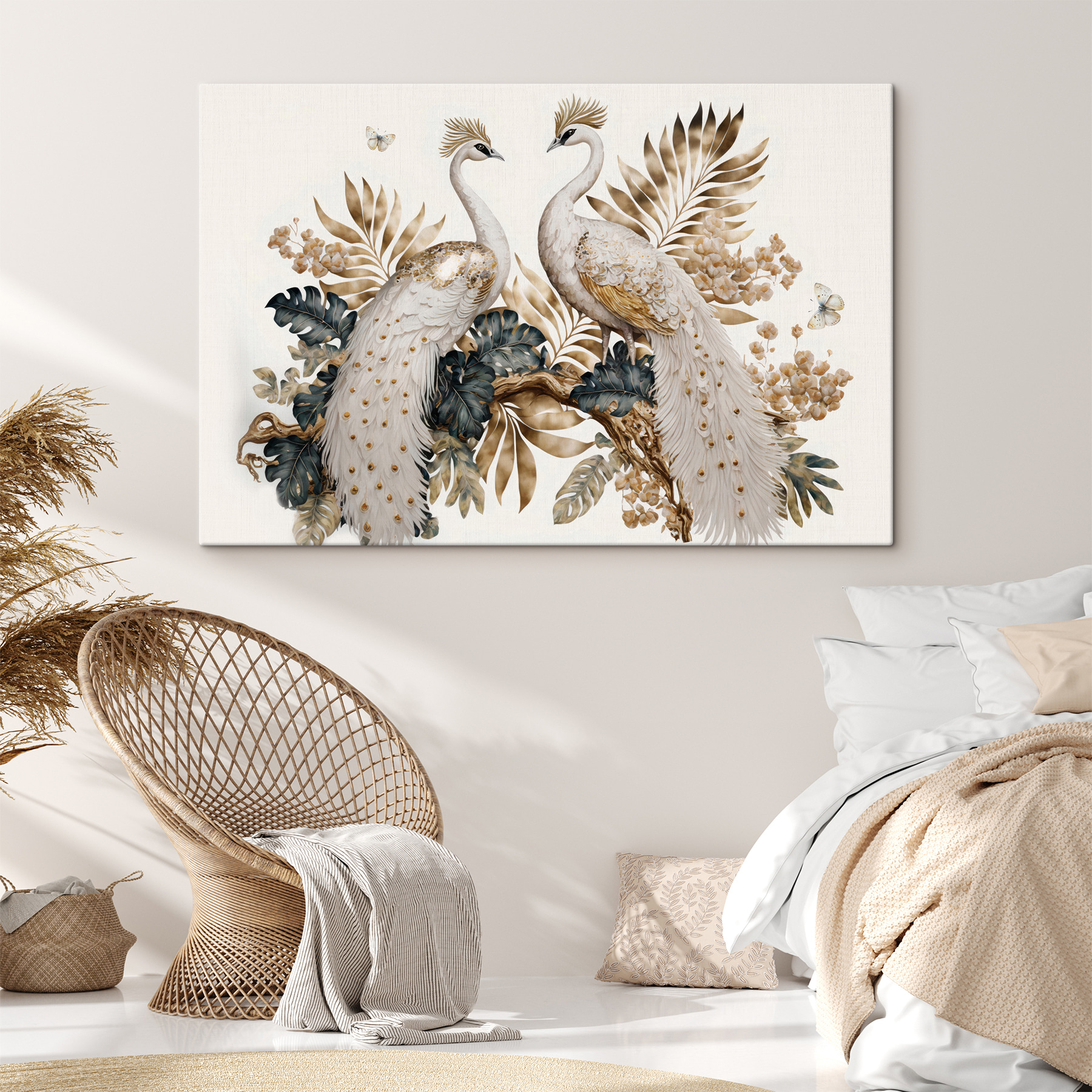 Dodaj odrobinę uroku do każdej przestrzeni dzięki temu wspaniałemu drukowi na płótnie przedstawiającemu eleganckie pawie wśród bujnych liści. To jak przeniesienie odrobiny tropików prosto do salonu. Wyobraź sobie, jak te wspaniałe ptaki pobudzą rozmowy. Znajomi będą się zastanawiać, skąd wzięło się twoje zamiłowanie do wyjątkowych dekoracji – to twój mały sekret! Misterne detale i delikatne kolory tworzą ciepłą atmosferę, dzięki czemu idealnie nadają się do przytulnego kącika do czytania, a nawet jasnego przedpokoju. Każde spojrzenie może poczuć się jak mini ucieczka, przypomnienie, by docenić piękno natury. Poważnie, kto nie chciałby mieć tych eleganckich ptaków w swoim domu?