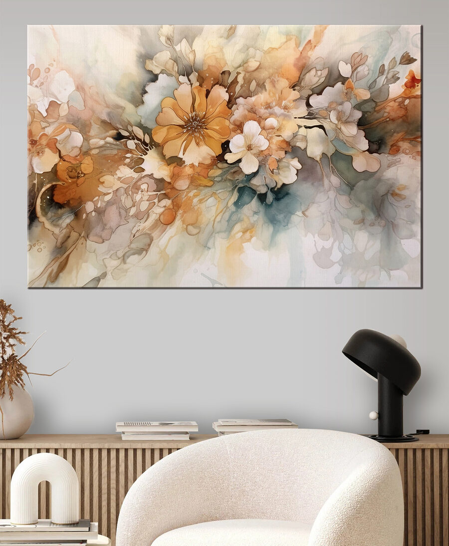 Odmień swoje ściany z odrobiną delikatnego uroku! To kwiatowe płótno akwarelowe o wdzięcznej nazwie “Floral Watercolor Merging in Harmony” wniesie powiew świeżości do każdego pomieszczenia. Wyobraź sobie, że przyjmujesz przyjaciół i ich wzrok zatrzymuje się na tych rozmarzonych kwiatach, rozlewających delikatne odcienie pomarańczy i miękkiej bieli. To jak przyjęcie w ogrodzie bezpośrednio na ścianie – nie wymaga podlewania! Idealna do przytulnych zakątków lub jasnych przestrzeni mieszkalnych, ta grafika nie tylko wzbogaca wystrój, ale także zachęca do ciepłych rozmów. Kto nie poczułby się bardziej jak w domu z tak zachęcającą grafiką?