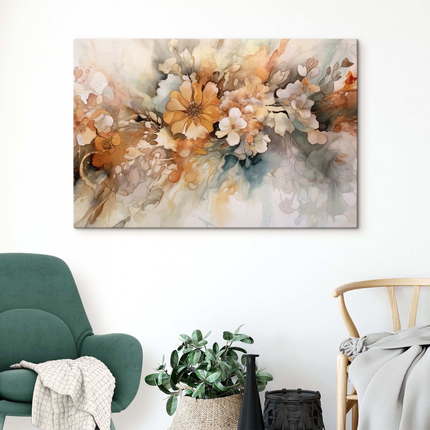 Odmień swoje ściany z odrobiną delikatnego uroku! To kwiatowe płótno akwarelowe o wdzięcznej nazwie “Floral Watercolor Merging in Harmony” wniesie powiew świeżości do każdego pomieszczenia. Wyobraź sobie, że przyjmujesz przyjaciół i ich wzrok zatrzymuje się na tych rozmarzonych kwiatach, rozlewających delikatne odcienie pomarańczy i miękkiej bieli. To jak przyjęcie w ogrodzie bezpośrednio na ścianie – nie wymaga podlewania! Idealna do przytulnych zakątków lub jasnych przestrzeni mieszkalnych, ta grafika nie tylko wzbogaca wystrój, ale także zachęca do ciepłych rozmów. Kto nie poczułby się bardziej jak w domu z tak zachęcającą grafiką?