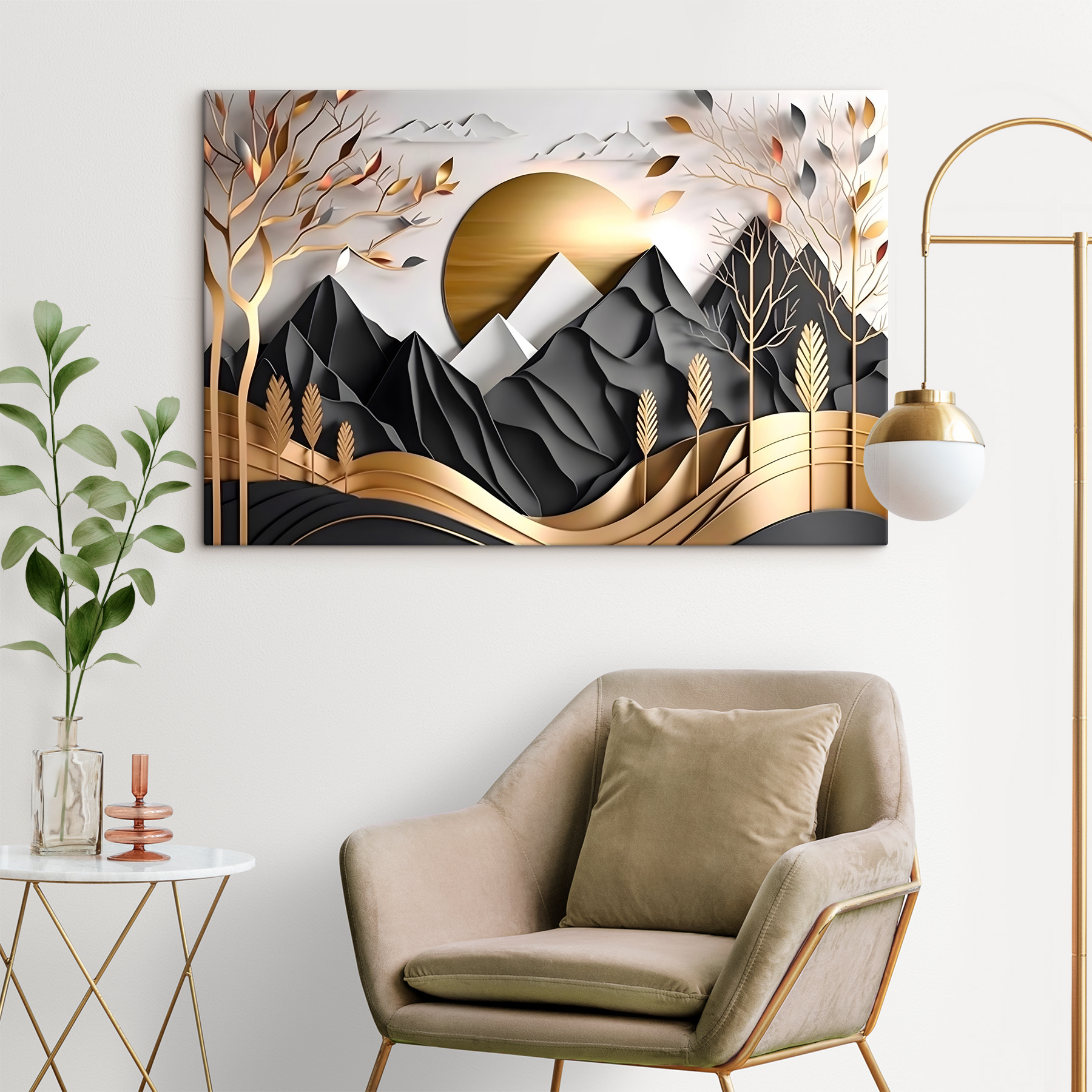 Przekształć pustą ścianę w spokojną ucieczkę dzięki temu oszałamiającemu wydrukowi na płótnie! Wyobraź sobie, że wracasz do domu do sennego krajobrazu gór i drzew, który jest jak delikatny uścisk natury. Ciepłe odcienie i eleganckie formy są jak delikatny szept lasu, zachęcający do spokoju i kreatywności. Wyobraź sobie, że popijasz poranną kawę, wpatrując się w tę sztukę, czując się nieco bardziej połączony ze wspaniałą przyrodą. Niezależnie od tego, czy znajduje się w salonie, czy w przytulnym kąciku do czytania, ten element dodaje idealny dotyk spokoju. To coś więcej niż dekoracja; to doświadczenie, które czeka, aby się wydarzyć!