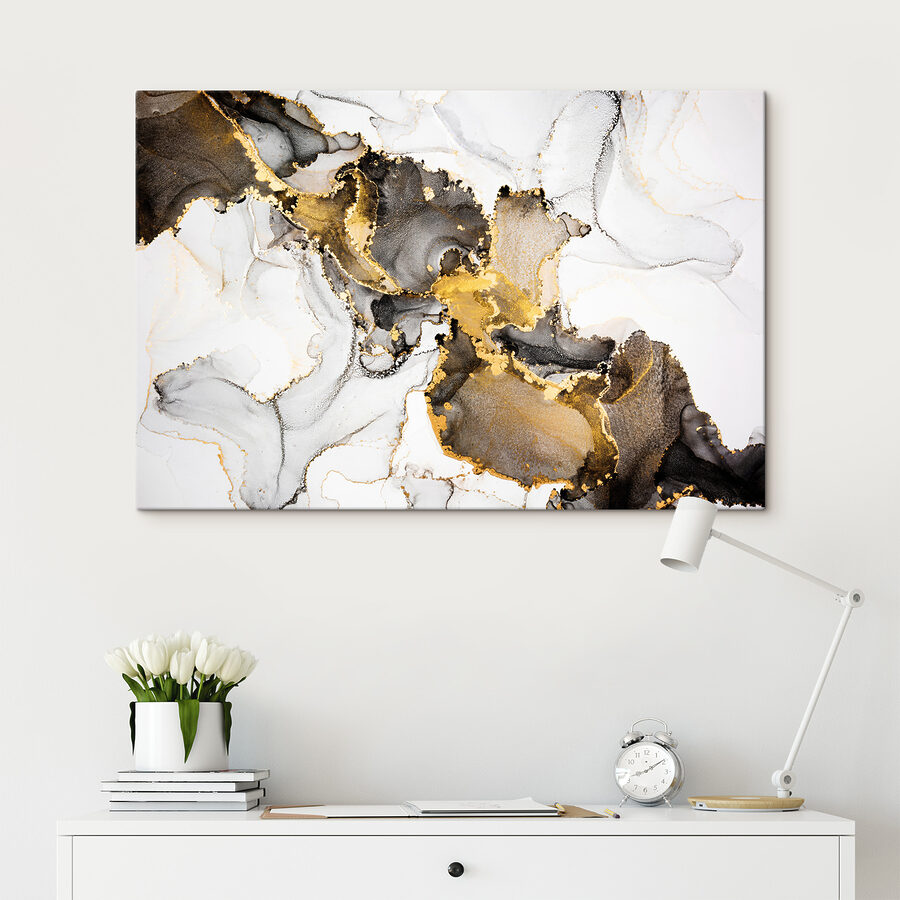 Przekształć zwykłą ścianę w urzekające arcydzieło z tym abstrakcyjnym czarno-żółtym marmurowym wzorem na płótnie. Wyobraź sobie, że wchodzisz do pokoju i witają Cię wirujące kształty i bogate kolory, które wywołują radość i intrygują. To jak małe dzieło sztuki nowoczesnej w twoim domu, które bez wysiłku łączy się z twoim wystrojem. Niezależnie od tego, czy jest to salon, czy przytulny kącik, ten mebel wprowadza atmosferę, która jest zarówno stylowa, jak i zachęcająca. Idealny dla tych, którzy cenią sobie unikalne akcenty, ale chcą zachować spokój. Dodaj odrobinę osobowości do swojej przestrzeni dzięki płótnu, które czuje się żywe!