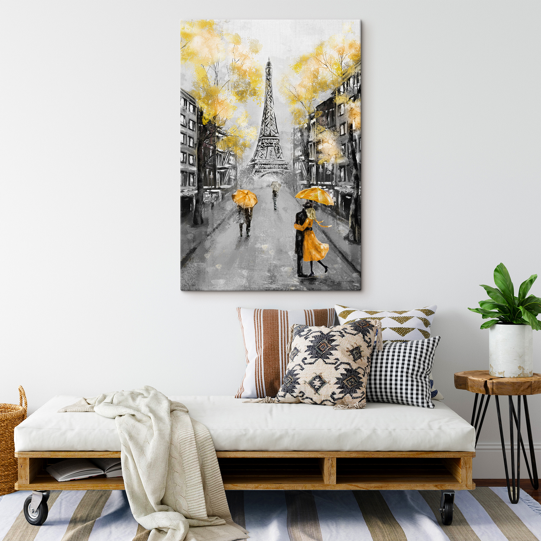 Poczuj urok Paryża dzięki temu wspaniałemu drukowi na płótnie przedstawiającemu tętniące życiem ulice pod baldachimem wesołych żółtych parasoli. To jak małe okno do Miasta Miłości, gdzie każda kropla deszczu opowiada historię. Wyobraź sobie, że siedzisz na kanapie z ciepłym napojem w ręku, a ta scena pobudza marzenia o romantycznych spacerach i spontanicznych przygodach. Wieża Eiffla spogląda ponad budynkami, przypominając nam o wszystkich cudach czekających na odkrycie. Ta grafika dodaje odrobinę radości i koloru do każdej przestrzeni, przekształcając ją w przytulny zakątek, który szepcze: “Chodźmy na spacer!”.