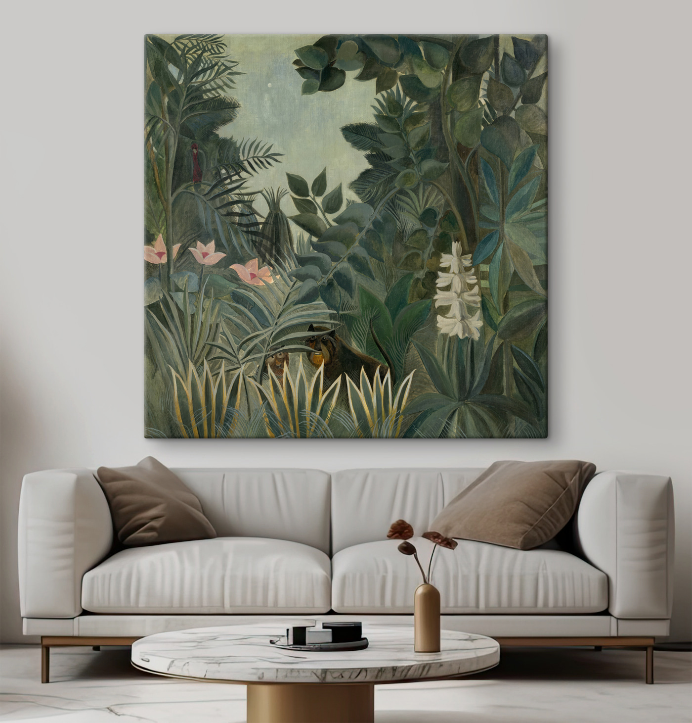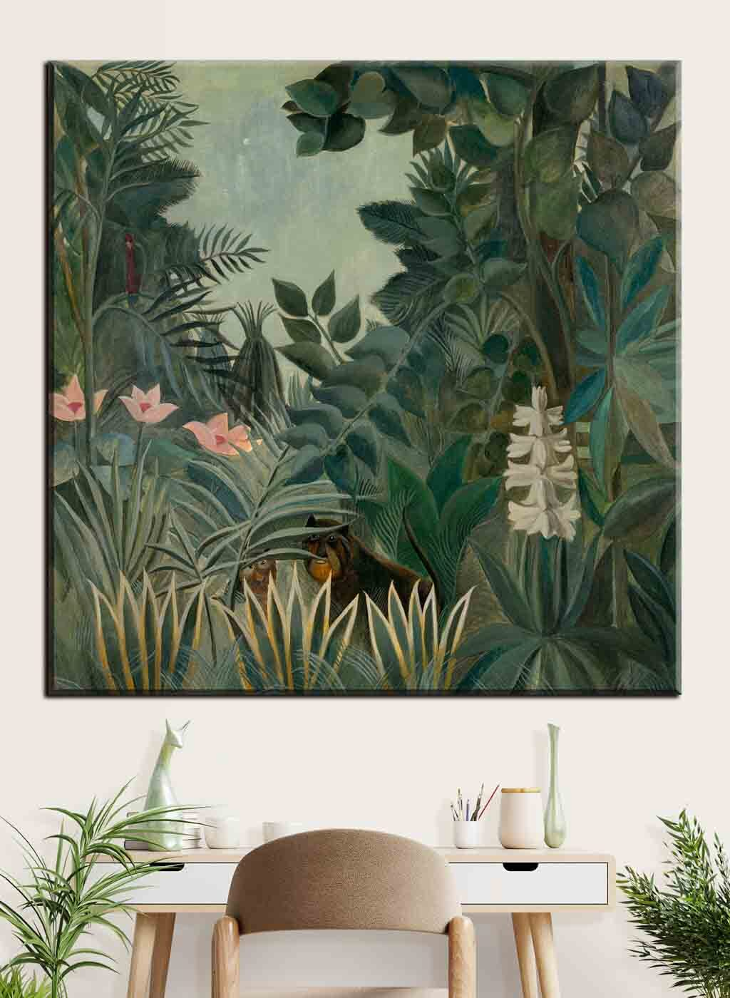 Czy kiedykolwiek czułeś, że Twoim ścianom przydałyby się mini wakacje? Ten wydruk na płótnie, “Bujna dżungla z ukrytymi stworzeniami”, może być właśnie tym biletem. To jak zaglądanie przez okno do sekretnego ogrodu – ukryte liście, różowe kwiaty i kto wie, jakie stworzenia bawią się w chowanego. Idealny na te dni, kiedy utknąłeś w środku, ale marzysz o przygodach. Zieleń jest uspokajająca, ale ma w sobie tę podstępną nutę tajemniczości. Zawieś go i nagle Twój salon lub biuro nie jest tylko pokojem – to ucieczka. Ciekawskie umysły z pewnością zgubią się w tym bujnym krajobrazie, być może dostrzegą ukrytego ptaka lub dwa. To wyjątkowe połączenie spokoju i intrygi, dzięki czemu jest to stylowy wybór dla miłośników przyrody.