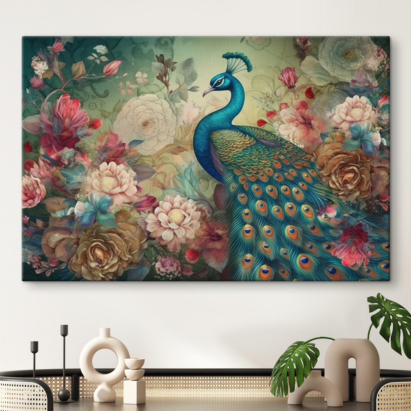 Przekształć każdą ścianę w tętniącą życiem ucieczkę dzięki temu oszałamiającemu wydrukowi na płótnie przedstawiającemu eleganckiego pawia otoczonego ogrodem kwiatów. Wyobraź sobie, że wchodzisz do pokoju i zostajesz powitany przez ten żywy wybuch kolorów – jakby natura postanowiła rozbić twoje domowe przyjęcie. Bogaty błękit i ciepłe płatki tworzą spokojną, ale żywą atmosferę, dzięki czemu idealnie nadaje się do każdej przestrzeni, od przytulnych zakątków po tętniące życiem salony. To nie tylko sztuka; to początek rozmowy, codzienne przypomnienie, że piękno można znaleźć wszędzie, nawet we własnych czterech ścianach. Poważnie, kto nie poczułby się trochę bardziej bajecznie z tym pięknem wiszącym wokół?