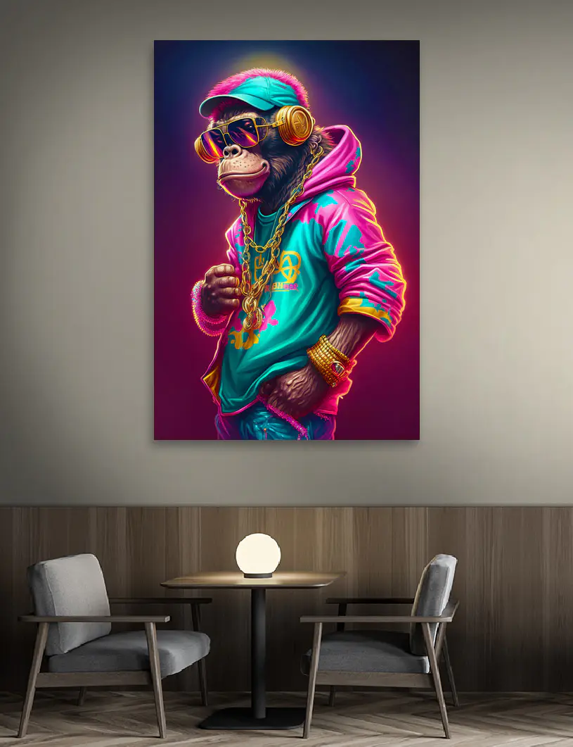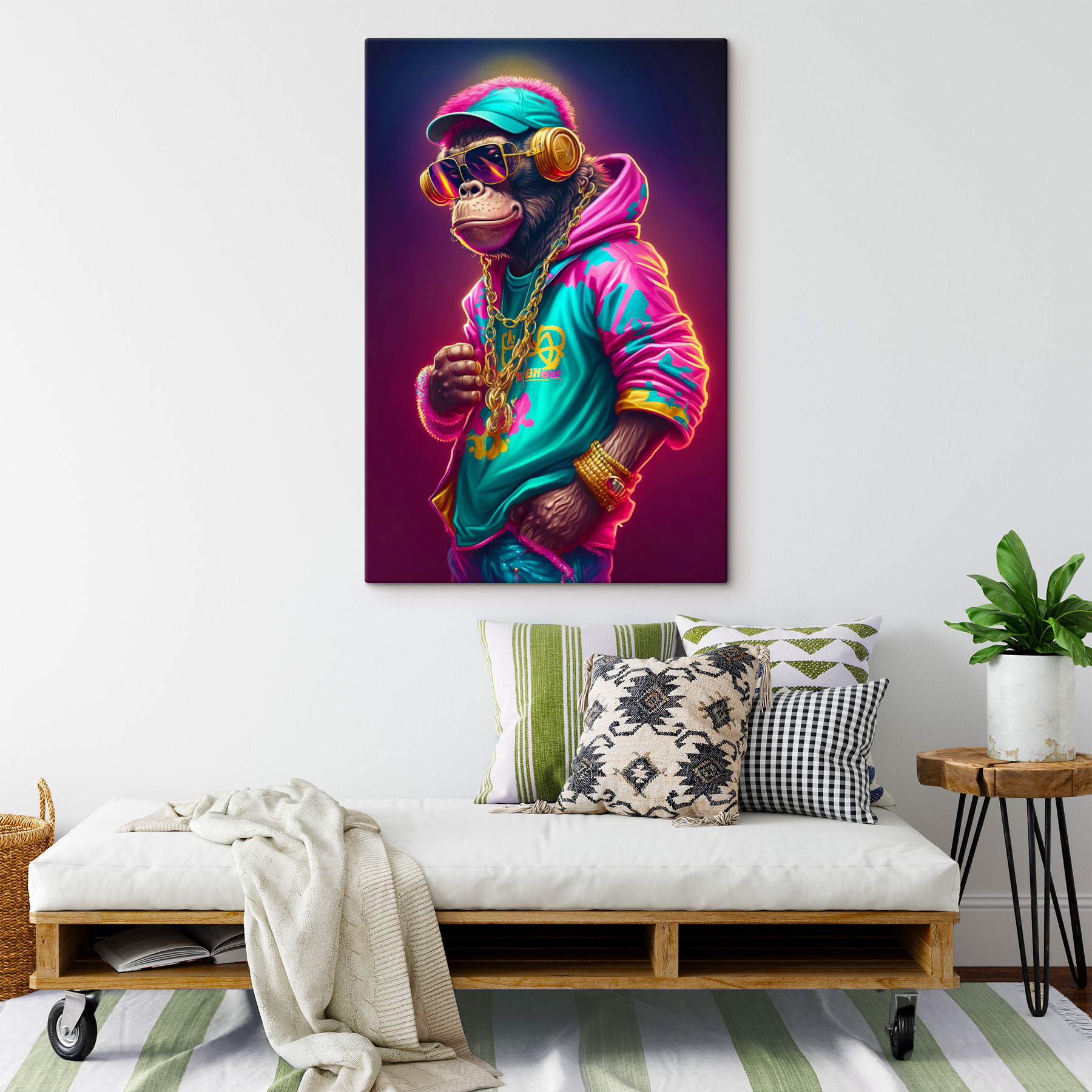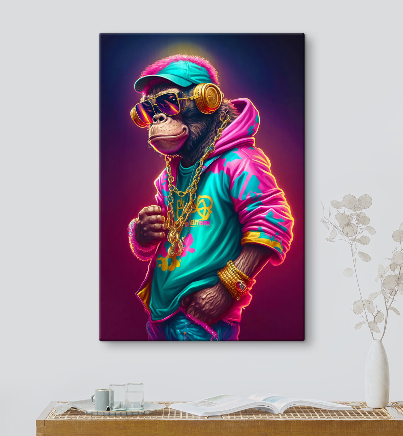 Sprawdź ten fajny wydruk na płótnie: super stylowa małpa w kapeluszu i okularach przeciwsłonecznych, która ma wszystkie fajne wibracje. Idealny dla każdego, kto lubi dziwaczne i zabawne dekoracje. Wyobraź sobie ten kolorowy i zabawny pop na ścianie – to tak, jakby twoja przestrzeń nagle stała się o wiele bardziej interesująca i zabawna. Szczegóły są żywe, z akwarelowymi akcentami różu i turkusu, i jest w tym coś tak kapryśnie urzekającego. Prawdopodobnie będziesz się uśmiechać, gdy tylko na nią spojrzysz. Ta fajna małpka wnosi odrobinę bezczelnego uroku i charakteru do twojego pokoju, niezależnie od tego, czy jest to salon, biuro, czy nawet pokój dziecięcy. Po prostu rozbija normę i nadaje ścianom osobowości. Kto by pomyślał, że małpa może wyglądać tak dobrze, prawda?