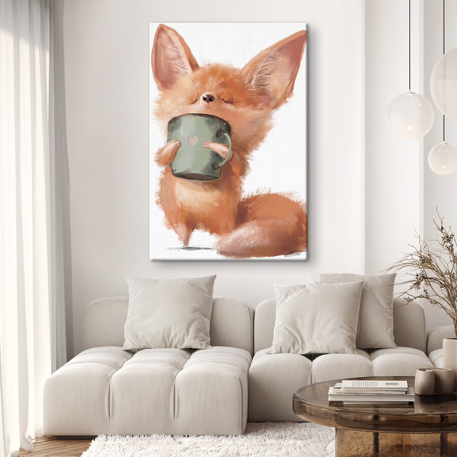 Wejdź do świata uroku dzięki temu wspaniałemu drukowi na płótnie przedstawiającemu uroczego lisa fenka delektującego się ciepłym napojem. Wyobraź sobie tego małego gościa z zamkniętymi oczami, zadowolonego jak to tylko możliwe – idealny do dodania przytulnego akcentu do każdego pomieszczenia. Jest to element, który wywołuje radość i uśmiech, niezależnie od tego, czy znajduje się w dziecięcym pokoju zabaw, czy w przytulnym kącie Twojego salonu. Wyobraź sobie leniwe popołudnia spędzone z filiżanką herbaty, ulubioną książką i tym małym liskiem, który nad tobą czuwa. To jak posiadanie wesołego towarzysza, który rozgrzewa serce i rozjaśnia ściany kaprysem. Rozjaśnij swoją przestrzeń dzięki tej uroczej sztuce, która z pewnością wywoła rozmowę lub dwie!
