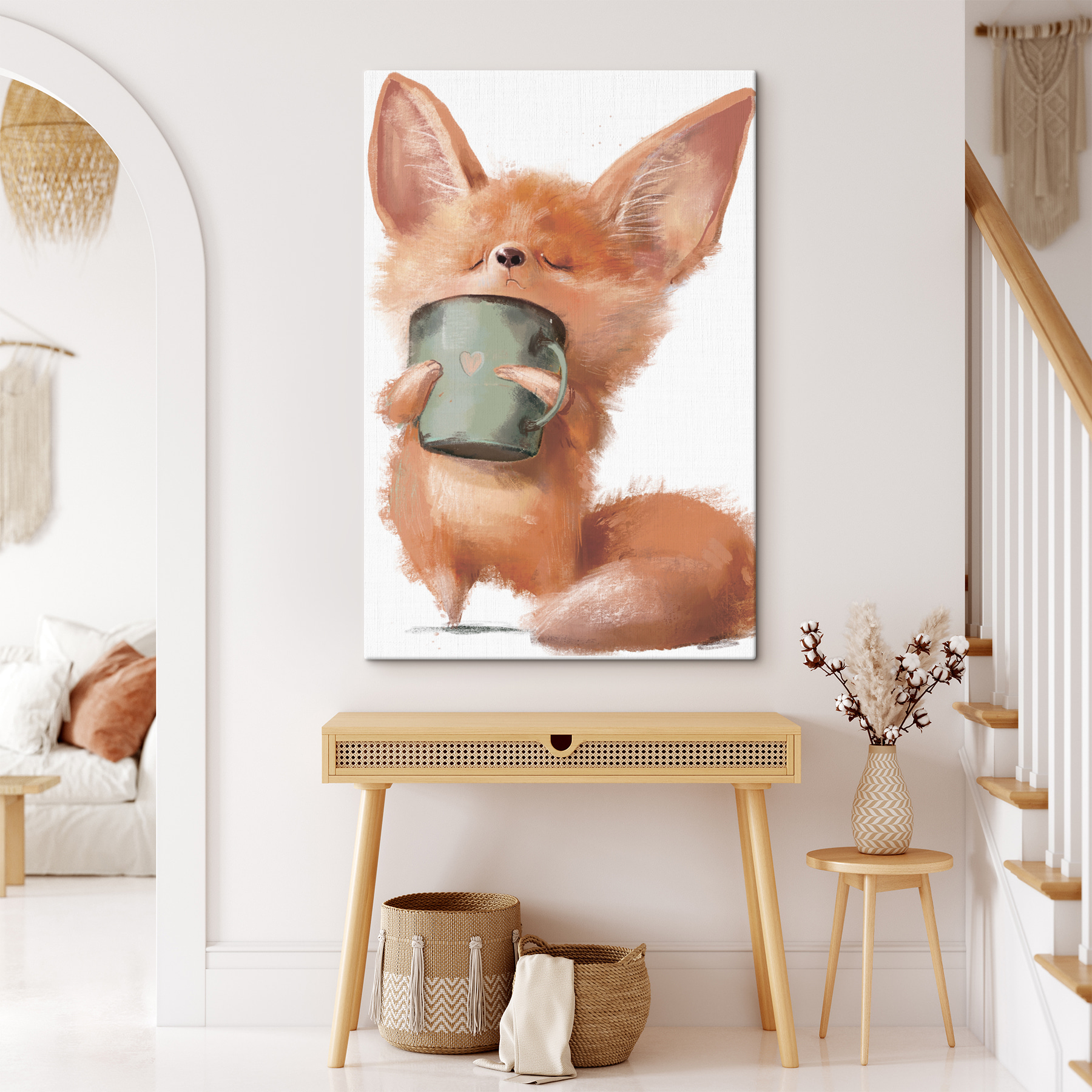 Wejdź do świata uroku dzięki temu wspaniałemu drukowi na płótnie przedstawiającemu uroczego lisa fenka delektującego się ciepłym napojem. Wyobraź sobie tego małego gościa z zamkniętymi oczami, zadowolonego jak to tylko możliwe – idealny do dodania przytulnego akcentu do każdego pomieszczenia. Jest to element, który wywołuje radość i uśmiech, niezależnie od tego, czy znajduje się w dziecięcym pokoju zabaw, czy w przytulnym kącie Twojego salonu. Wyobraź sobie leniwe popołudnia spędzone z filiżanką herbaty, ulubioną książką i tym małym liskiem, który nad tobą czuwa. To jak posiadanie wesołego towarzysza, który rozgrzewa serce i rozjaśnia ściany kaprysem. Rozjaśnij swoją przestrzeń dzięki tej uroczej sztuce, która z pewnością wywoła rozmowę lub dwie!