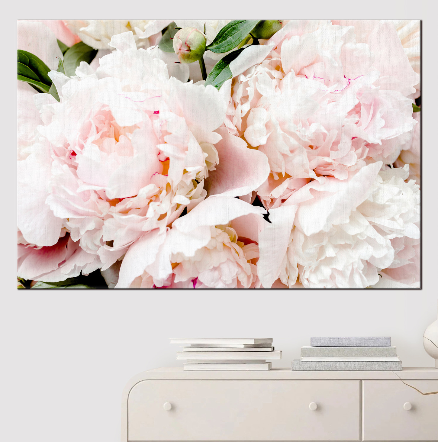 Przekształć dowolną ścianę w kwitnącą krainę czarów dzięki temu drukowi na płótnie przedstawiającemu delikatne różowe piwonie. Wyobraź sobie te puszyste kwiaty tętniące życiem, wnoszące poczucie spokoju i radości do Twojej przestrzeni. To jak posiadanie ogrodu bez potrzeby podlewania i słońca! Idealna do przytulnego salonu lub spokojnej sypialni, ta grafika szepcze relaks. Przyjaciele będą podziwiać ten elegancki akcent, a to także świetny początek rozmowy. Poza tym, kto nie kocha piwonii? Są jak konfetti natury, celebrujące piękno w najczystszej postaci. Zawieś go, usiądź wygodnie i pozwól, aby urok się rozwinął.