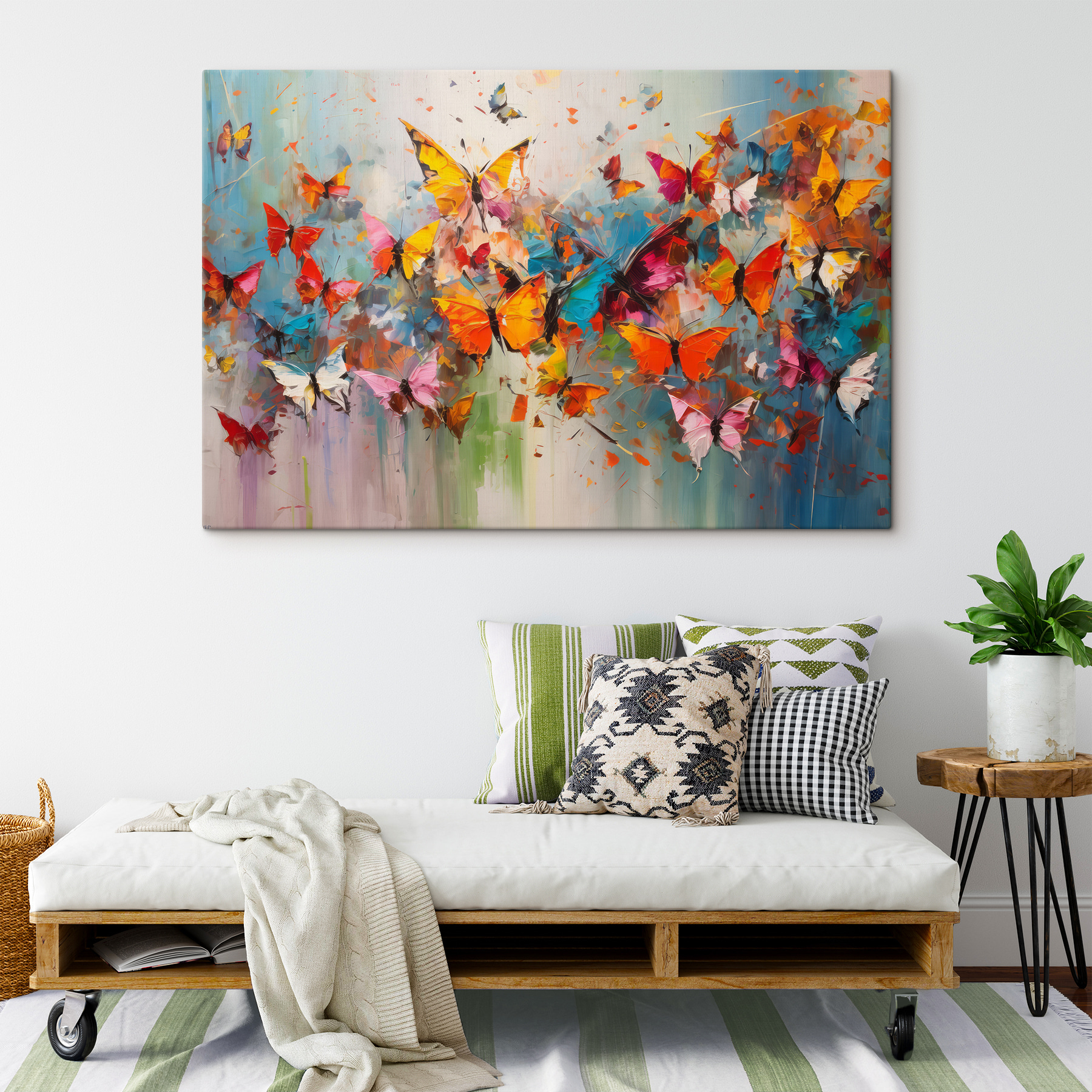 Odmień każdą przestrzeń dzięki temu żywemu obrazowi na płótnie “Grupa latających motyli”. To jak wybuch radości na ścianie, z kolorowymi motylami latającymi w kapryśnym tańcu. Wyobraź sobie światło słoneczne wpadające do środka, rzucające zabawne cienie, gdy te piękności latają, przenosząc magię na zewnątrz do wnętrza. Idealny do przytulnego kącika do czytania lub tętniącego życiem salonu, ten element nie tylko ociepla ściany, ale także pobudza do rozmów. Przyjaciele wejdą, spojrzą i natychmiast poczują radosne wibracje. Któż nie chciałby, aby trzepocząca eksplozja kolorów dodała życia do jego domu? Niech ten wydruk szepcze historie o cudach natury – prawdziwa ucieczka w domu.